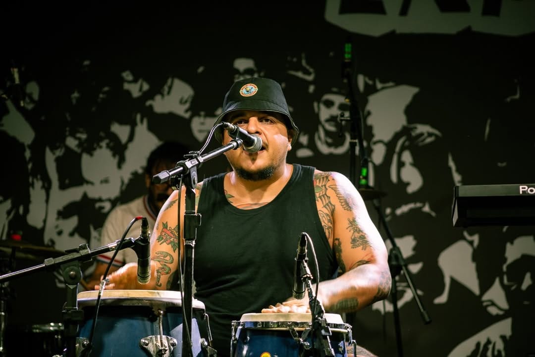 Aí fomos botando mais cumbia no repertório. Quando a gente olha na história, tem várias pessoas que estavam nesse corre da cumbia há um bom tempo, mas a gente não conhecia. A gente não é pioneiro, é importante falar isso, mas a gente não conhecia mesmo essa cena. Ninguém da banda tinha raízes na cumbia.
