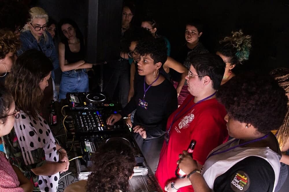 O coletivo acabou se desfazendo, a galera foi saindo, o Dini seguiu a carreira dele como DJ e eu trabalhando em outras produções. A gente formou — eu, EVEHIVE, Glau Tavares, Bia Marques, Rebr3akz, KENYA20HZ e a Ingrid Nepomuceno, que tava na primeira edição — a Oficina das Minas, onde a gente dava aula de discotecagem e produção e fazia certificado pras meninas, tinha essa imersão.