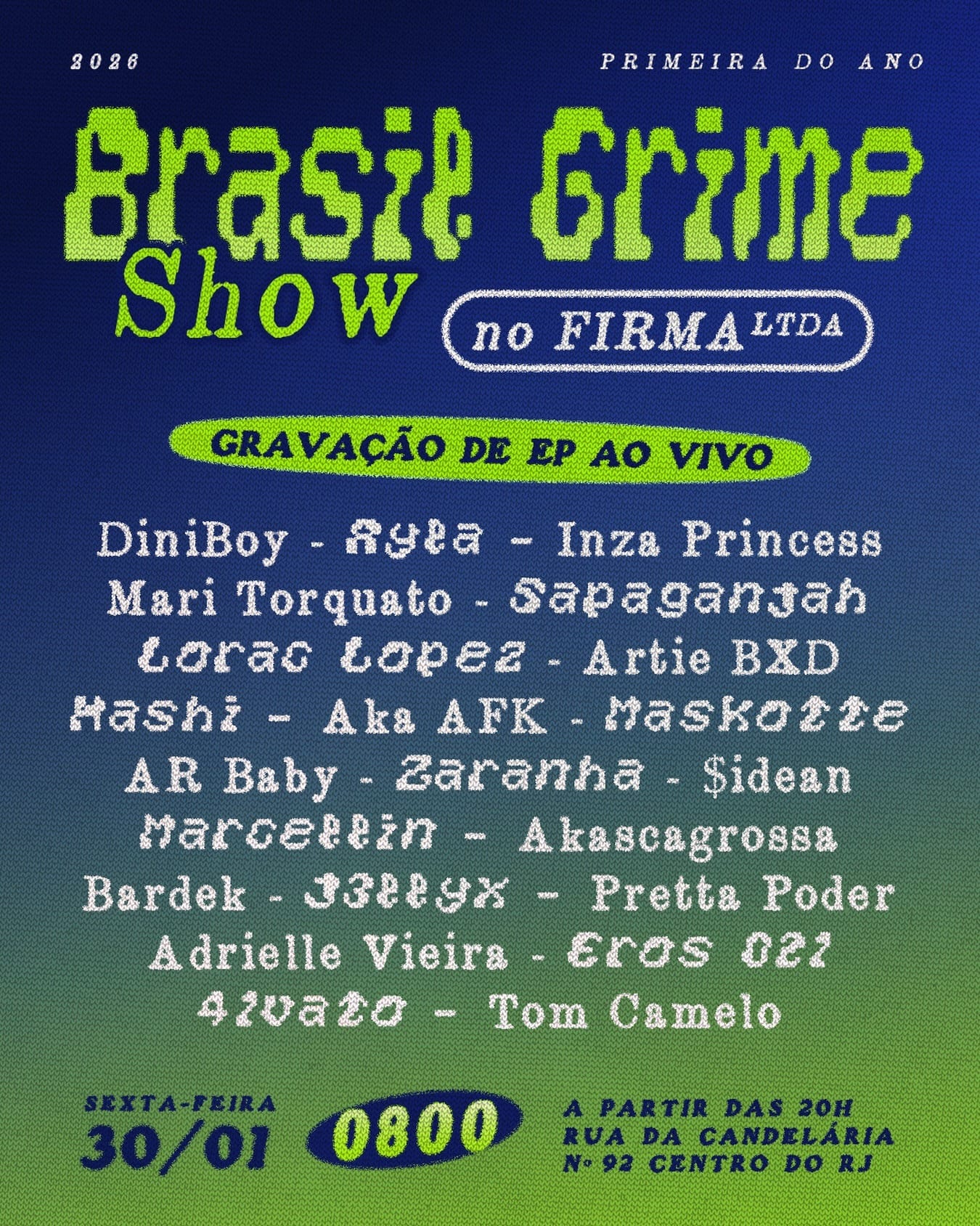 Como não existia uma disponibilidade muito grande de MC’s que tivessem esse estudo de grime focado, houve uma mistura, na curadoria, de trazer artistas do trap, do rap, hip-hop, boombap, do funk — artistas que eram relacionados ou que estavam se encaminhando pro drill, pela semelhança com o trap.