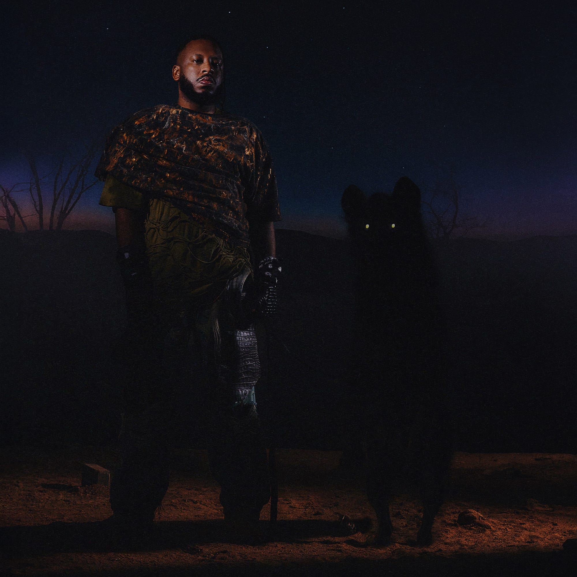 Fotografada por Bruna Sussekind, a imagem parte de uma fabulação ancestral para construir sua força simbólica. O conceito evoca a lenda de uma besta ligada à origem e à ancestralidade da humanidade, remetendo à formação de bandos nômades em constante deslocamento. A escolha da hiena, figura de grande importância cultural na história etíope, conecta instinto, sobrevivência e resistência. Essa narrativa se materializa em uma estética que mistura o rústico, o visceral e o imperfeito com códigos urbanos. A capa não busca conforto, mas densidade histórica e tensão permanente.