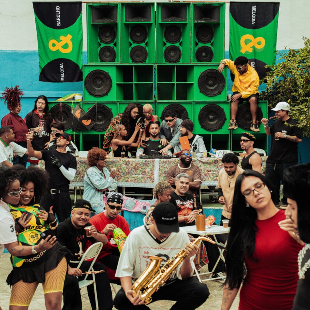 A capa de Melodia & Barulho nasce de uma decisão consciente de fabricar uma imagem tão contemporânea quanto o disco. Maui parte da recriação fotográfica de uma obra do artista Arte Deft, conectando o álbum a um movimento de arte feito por gente de favela e à lógica do crialismo: mistura, colagem, excesso de estímulos, referências cruzadas, o agora comprimido em camadas. A imagem carrega comunidade e memória política. A capa, com direção de Herbert Cardoso, fotografia de Wander Scheeffër, direção de arte de Veneno Tropical e mais um grande elenco, cristaliza a ambiguidade central do disco: alegria e dureza ocupando o mesmo espaço, o tempo inteiro. Não ilustra o som. Reproduz a sensação de viver dentro dessas antíteses.