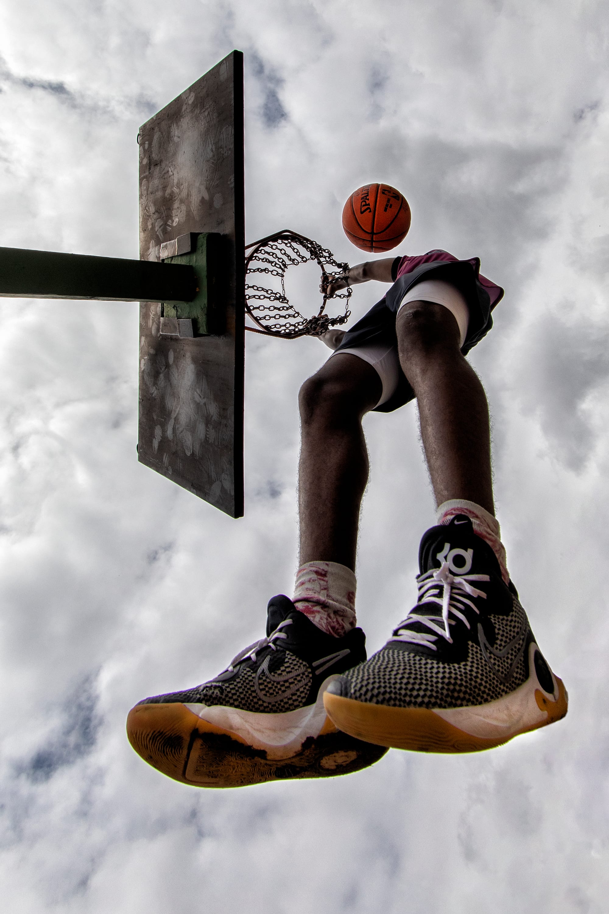 Já tinha feito diversas fotos desse ângulo inusitado, mas nunca tinha conseguido registrar uma onde o jogador “perdeu a cabeça” na enterrada e a bola parecesse a cabeça perdida, flutuando no ar.