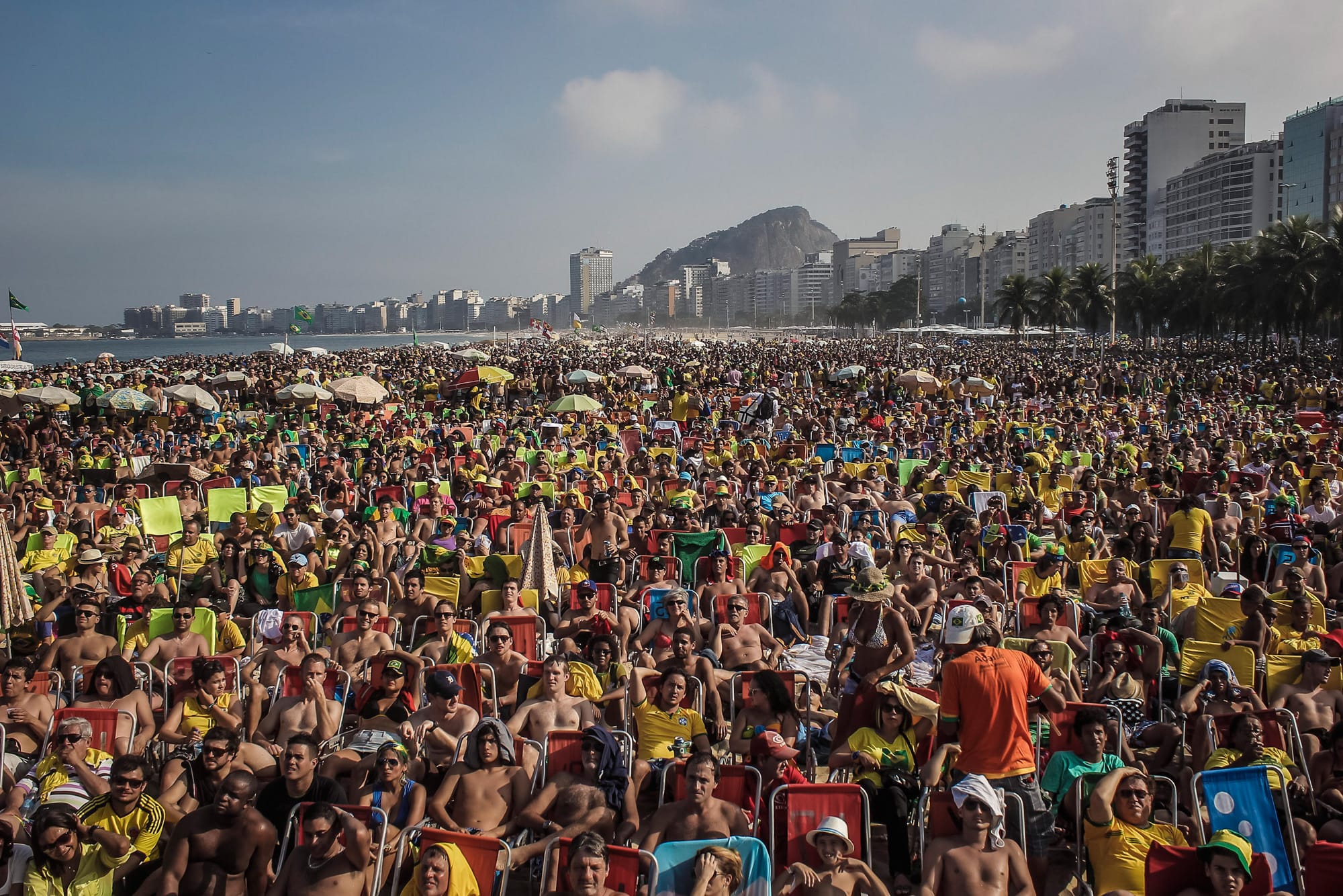 Escolhi essa fotografia porque ela me atravessa muito. Ela nasce em 2014, durante a Copa do Mundo no Brasil, especificamente no Rio de Janeiro, num período em que eu estava profundamente imerso no fotojornalismo, fazendo exatamente aquilo que eu queria fazer. A cena acontece na praia de Copacabana, em meio a um jogo tenso entre Brasil e Colômbia. Desde então, essa imagem carrega uma inquietação silenciosa: quem a vê quase sempre me pergunta o que aquelas pessoas estão olhando. E talvez essa seja a pergunta mais importante que a fotografia propõe.