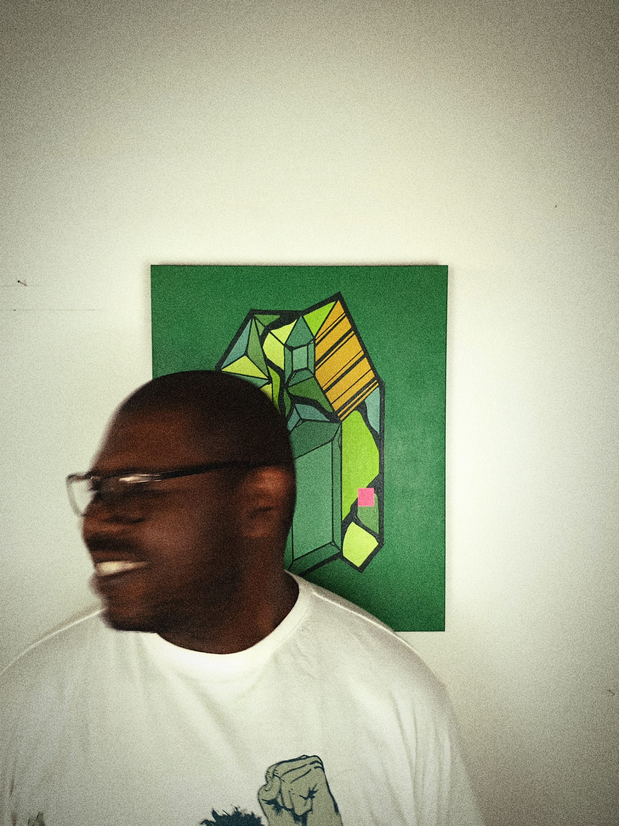 Essa foi a primeira exposição que consegui terminar aqui no ateliê. Ela chama Crystalzz, com dois Z no final fazendo referência ao jazz. Ela se baseia em processos e buscas - cada pessoa tem atalhos para conseguir chegar nos seus processos de uma forma ideal. Um escritor tem as manhas para escrever um bom texto; um dj sabe qual sebo que consegue encontrar bons discos; um vendedor de melancia, bate na melancia e sabe qual ele vai comprar.