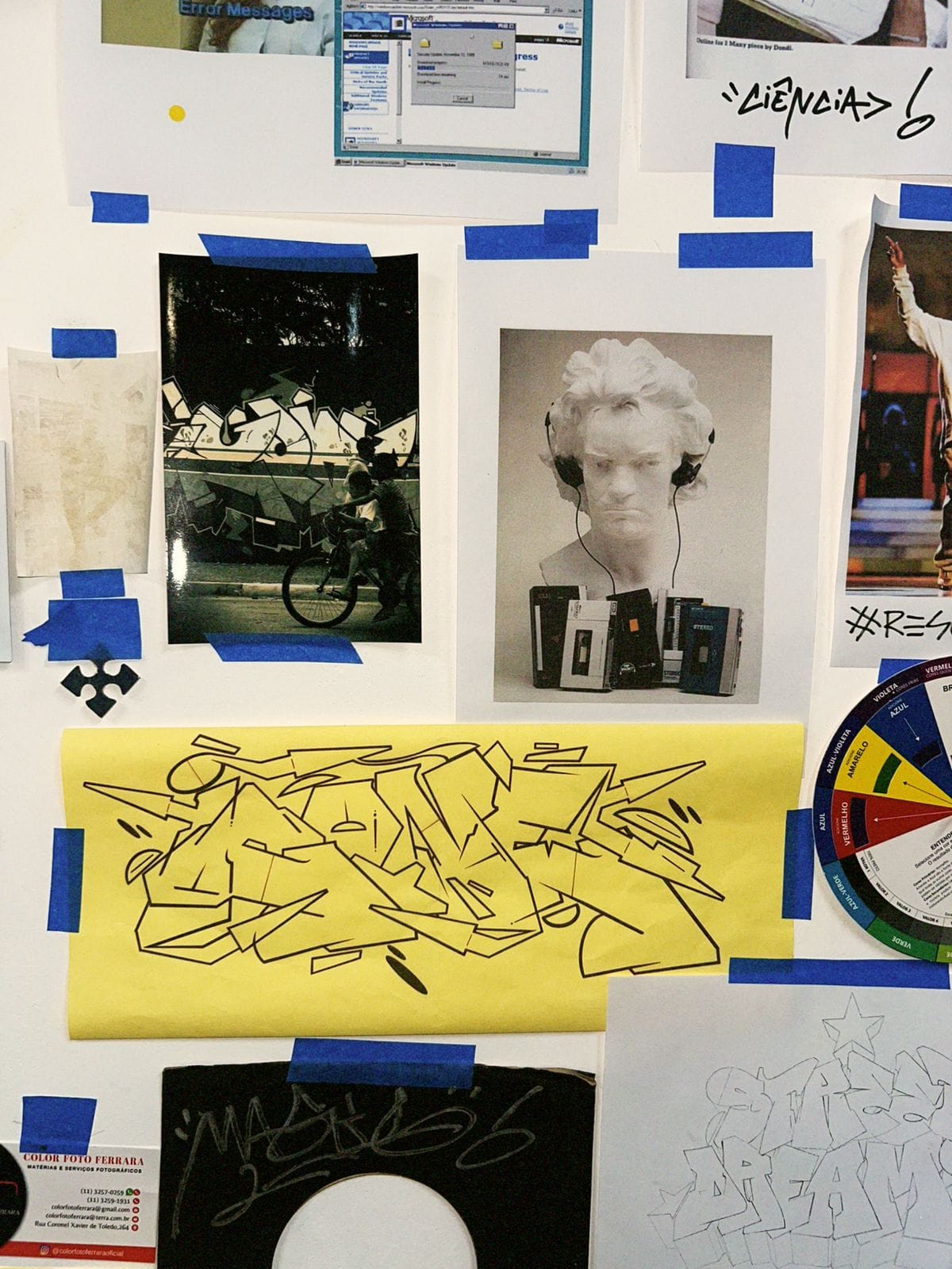 A minha experiência, nos trabalhos mais relevantes, foi com as pessoas vindo atrás do meu trabalho, seja nas letras ou nos fragmentos, mais abstrato. Mas hoje em dia existe todo tipo de briefing que você pode imaginar (risos). Eu sou muito sincero com a minha parada, se eu vejo que não é algo que eu faço, por exemplo, mais realista ou figurativo, eu falo até pra não criar expectativas.