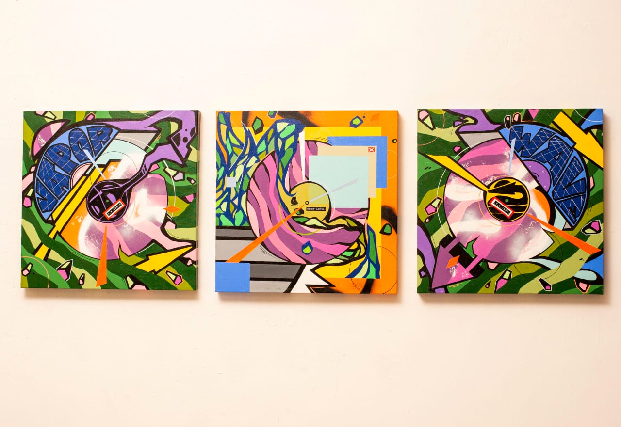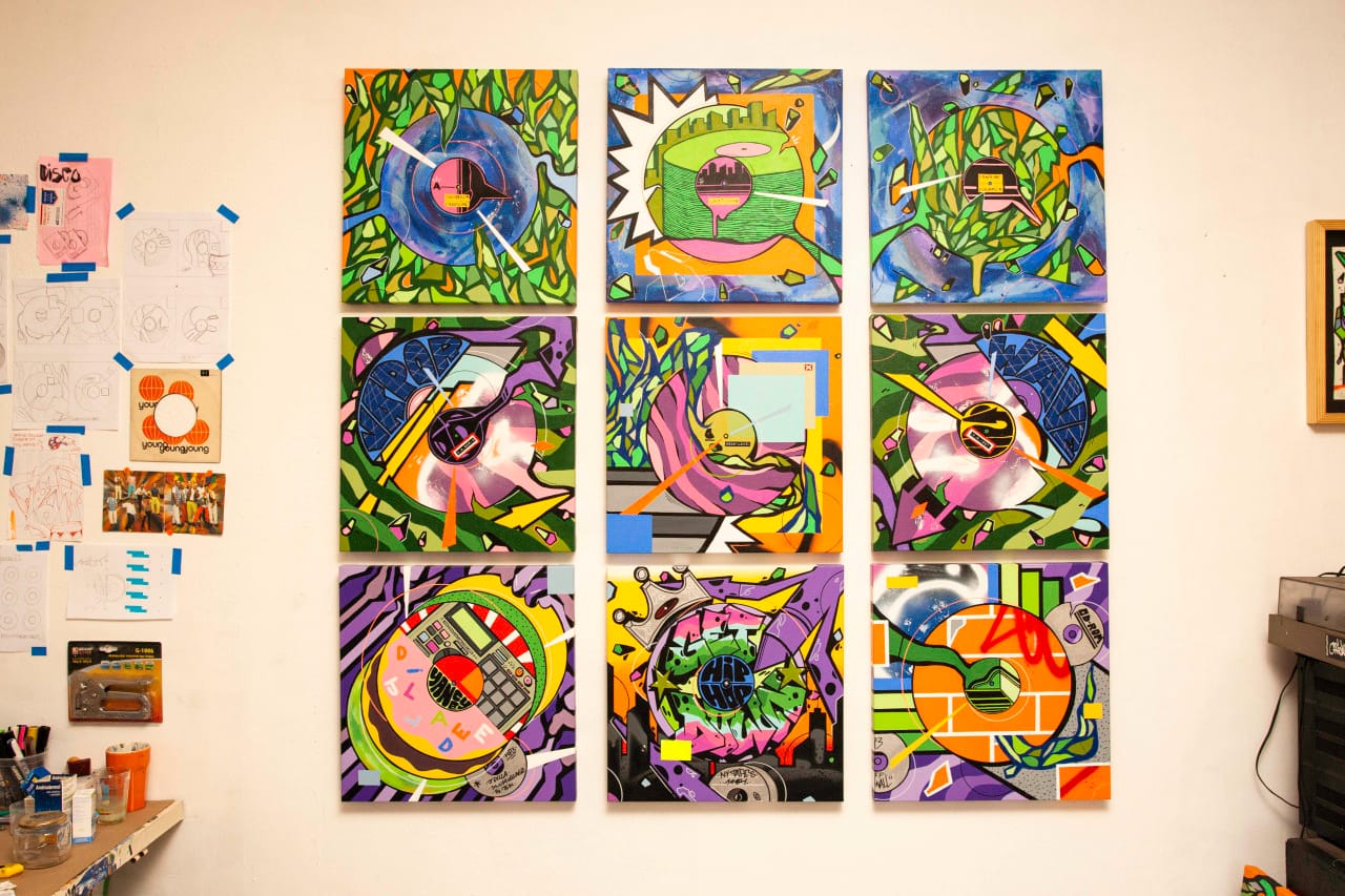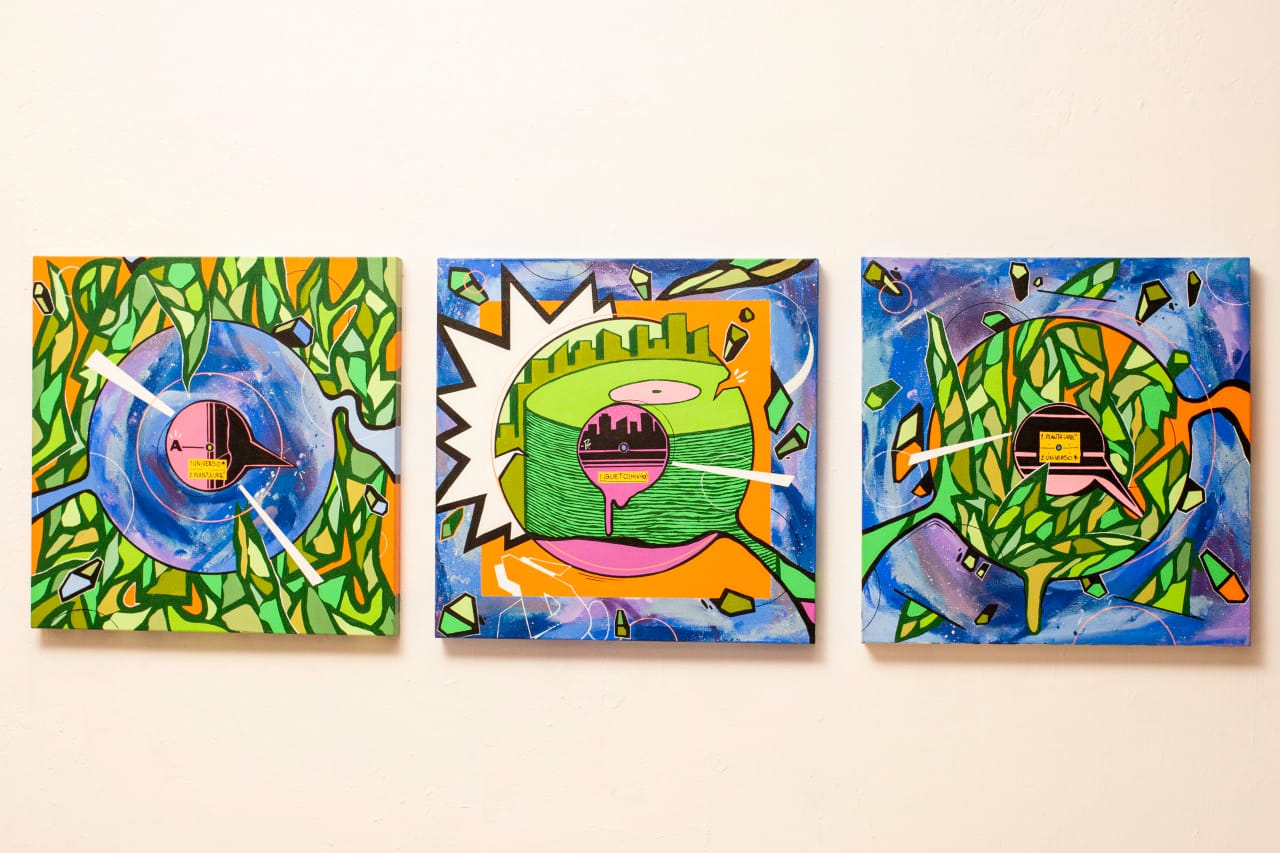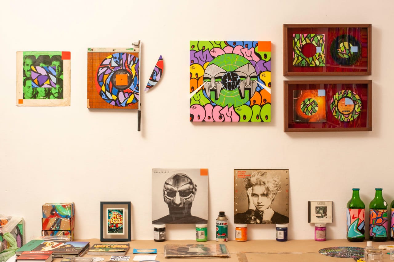 Não, eu já estava fazendo esse tipo de trampo. Na pandemia foi a minha época mais criativa e quando eu mais consegui desenvolver minha pesquisa. Estava recluso e consegui até fazer exposição online, a Disco Record, com obras que olho e penso que não vou conseguir chegar mais nessa magnitude. É bem louco isso, né? As coisas que acontecem, não é só sobre estar ali e fazer, muita coisa influencia - o que você estava ouvindo, assistindo, o que estava acontecendo localmente… É toda essa atmosfera, é muito louco isso.