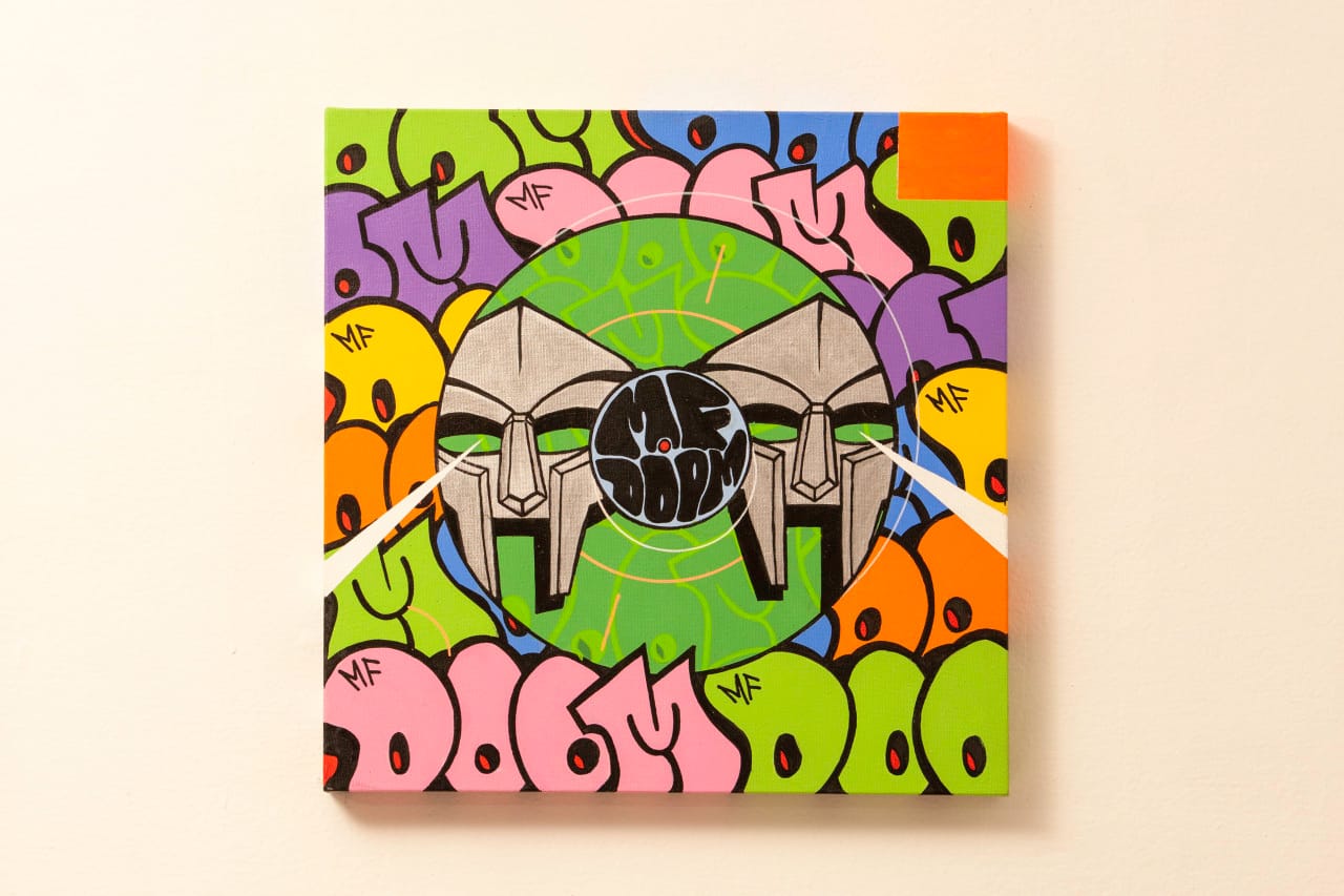 Junto da Intermanus, um boneco referenciando o MF Doom com um boné fat caps mesclando hip hop e grafite no personagem do Iconek
