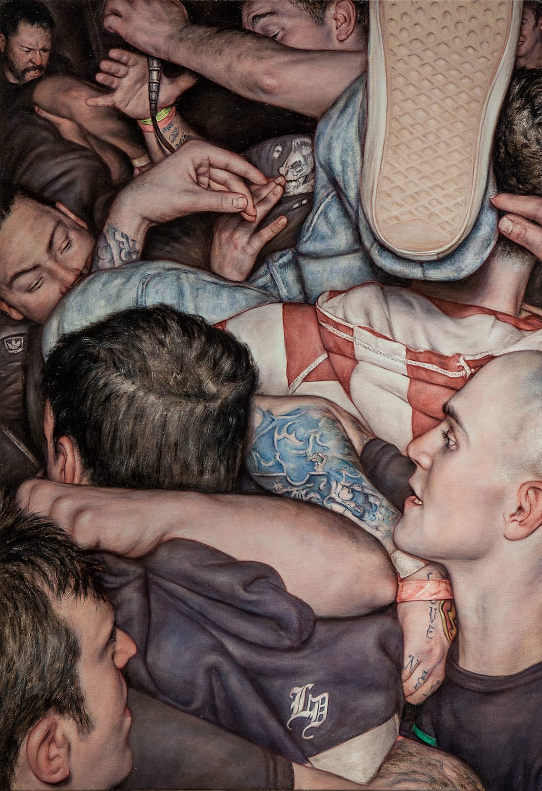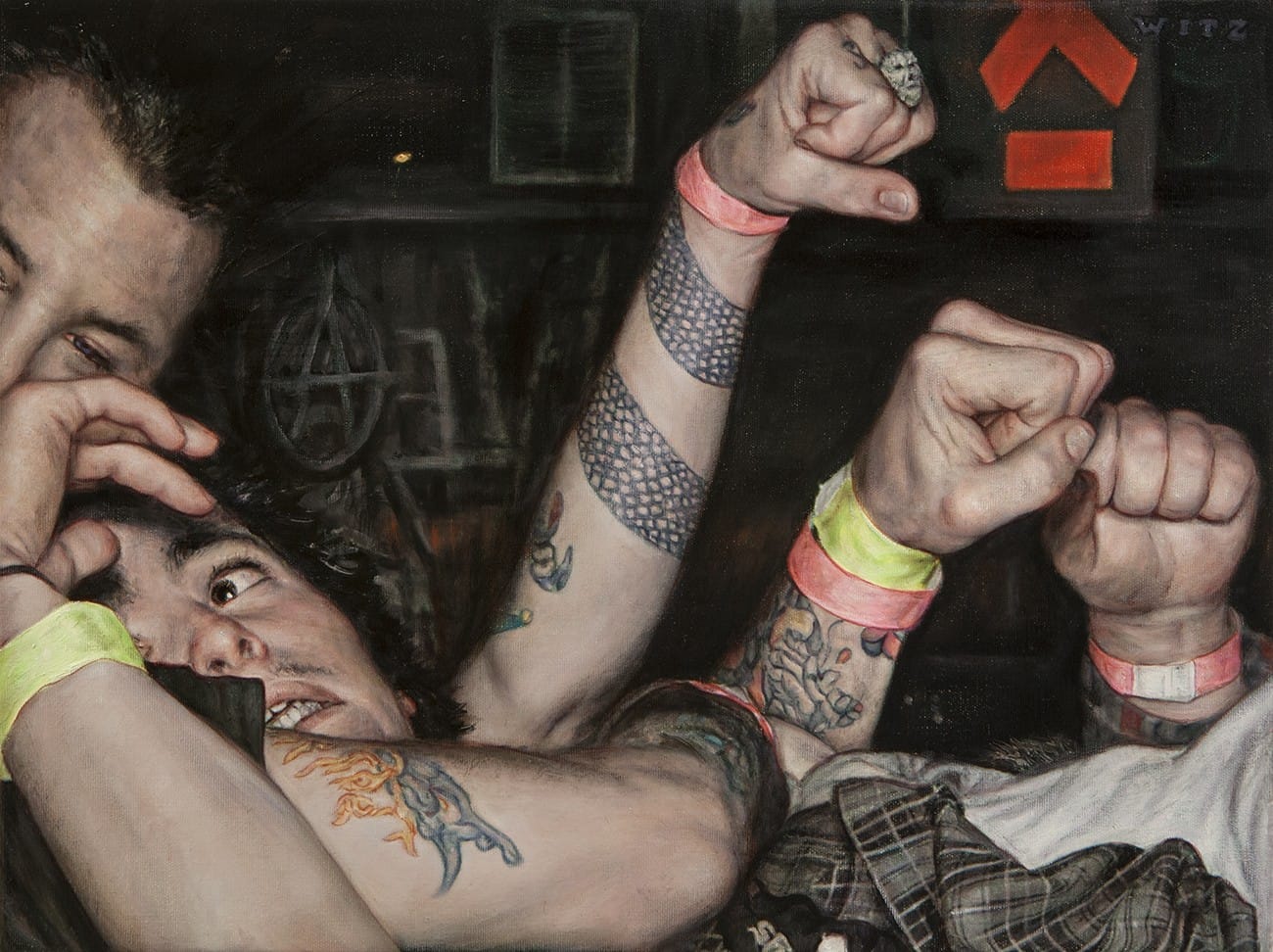 Impulsionado por essa energia, Witz decidiu explorar a beleza brutal dos moshs utilizando a maestria técnica da pintura à óleo. Tendo as fotografias de show como referência visual, a ideia foi captar as expressões congeladas dos corpos que se amontoavam, se distorciam e colidiam entre si. É a fração de segundo em que tudo acontece ao mesmo tempo durante o ápice de uma música.