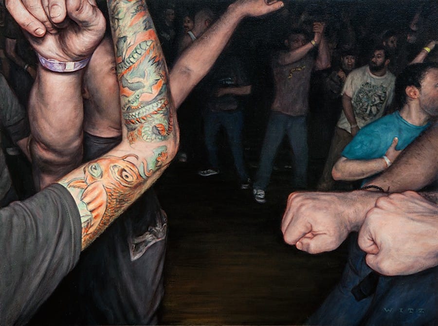 Impulsionado por essa energia, Witz decidiu explorar a beleza brutal dos moshs utilizando a maestria técnica da pintura à óleo. Tendo as fotografias de show como referência visual, a ideia foi captar as expressões congeladas dos corpos que se amontoavam, se distorciam e colidiam entre si. É a fração de segundo em que tudo acontece ao mesmo tempo durante o ápice de uma música.