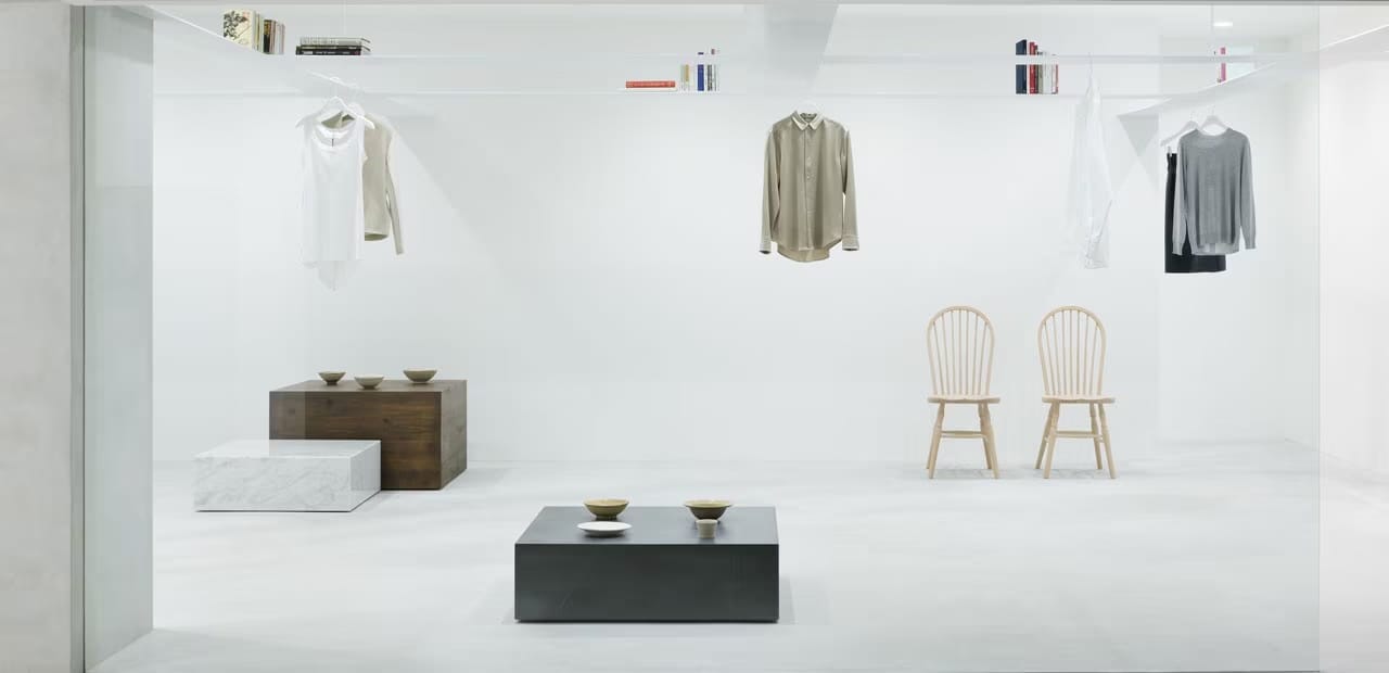 Essa ideia está ligada à noção japonesa de ma: o intervalo, o espaço entre as coisas. Ma é o silêncio entre as palavras, o vazio que estrutura e nas lojas esse vazio tem função ativa. É ele que permite que o produto tenha respiro, que o olhar desacelere, que o corpo esteja presente.