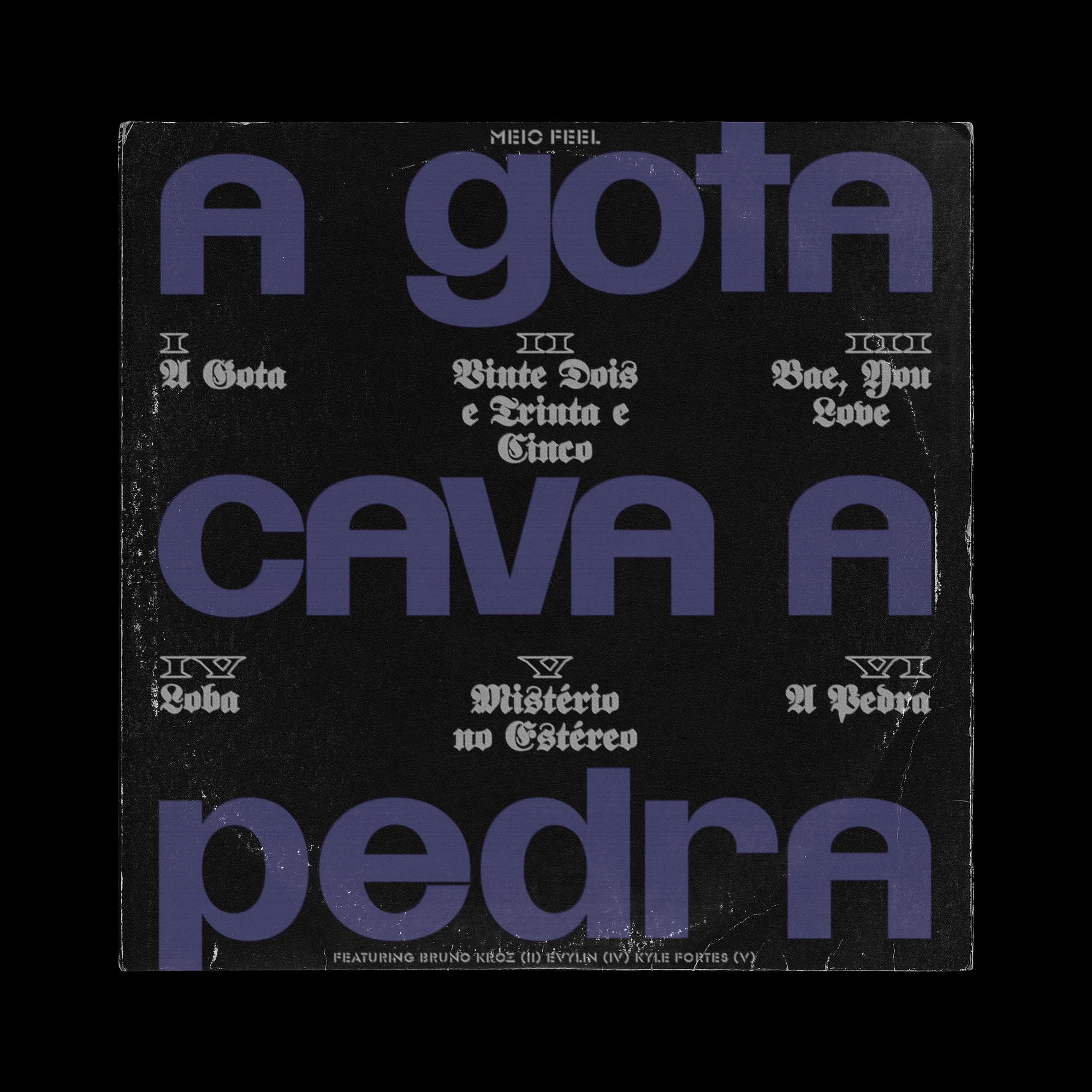 Depois de alguns anos sem soltar um projeto maior, Meio Feel retorna esse ano com o EP A Gota Cava a Pedra, um disco de boombap que conta com três faixas instrumentais e três feats com os MCs Bruno Kroz, EVYLiN e Kyle Fortes.