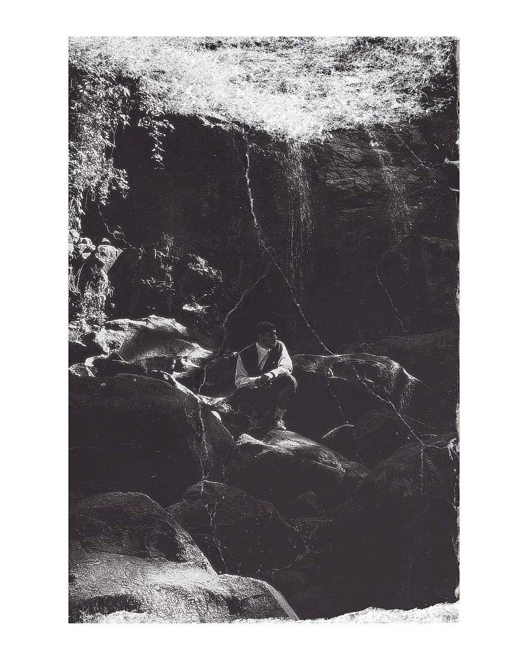 Não, mano. Eu sou designer também, e graças a isso, eu tenho eu tenho muito contato, muito amigo, e nesse projeto eu contei com três pessoas que foram chaves. Minha esposa Ritiélly fez a captação dos vídeos e também me ajudou muito nas escolhas e em ditar o tom das paradas, tá ligado? Teve a fotografia do Lucas Oliveiro, que é um menor aqui da cidade que a gente já trabalhou junto em uma marca de roupas, e ele também já trabalhou com o RHR. Eu já sabia que eu queria uma parada mais artística, e sabia que eu podia contar com ele e com o Léo Faria, outro designer.