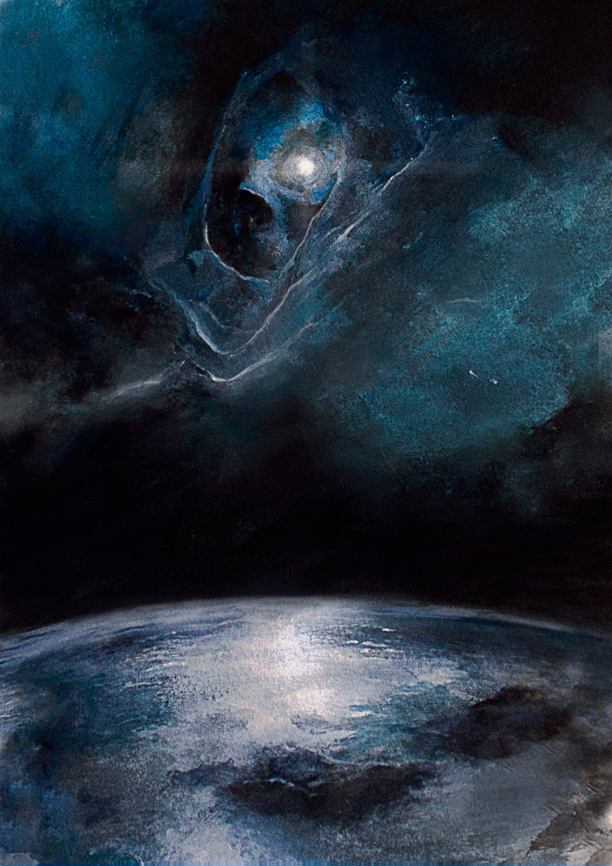 O Dan Seagraves fazia bastante coisa de poster color, a guache. Ele tinha vinte anos de idade. O Altars of Madness foi feito por um cara de 20 anos de idade! Mas voltando, comecei a estudar a guache e a chave virou, vi que era mais a minha arte, mas a guache não é tão boa por custo benefício, muito cara para pintar grandes telas.