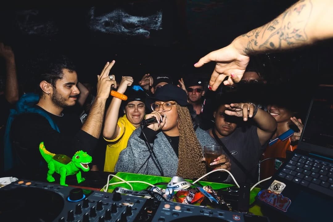 Acho uma dinâmica bem foda desses eventos de grime, porque é um contato bem mais próximo entre o artista e quem tá ouvindo. Eu acho massa o formato, gosto muito — é mais fervoroso, o contato entre o público e quem tá fazendo a parada.