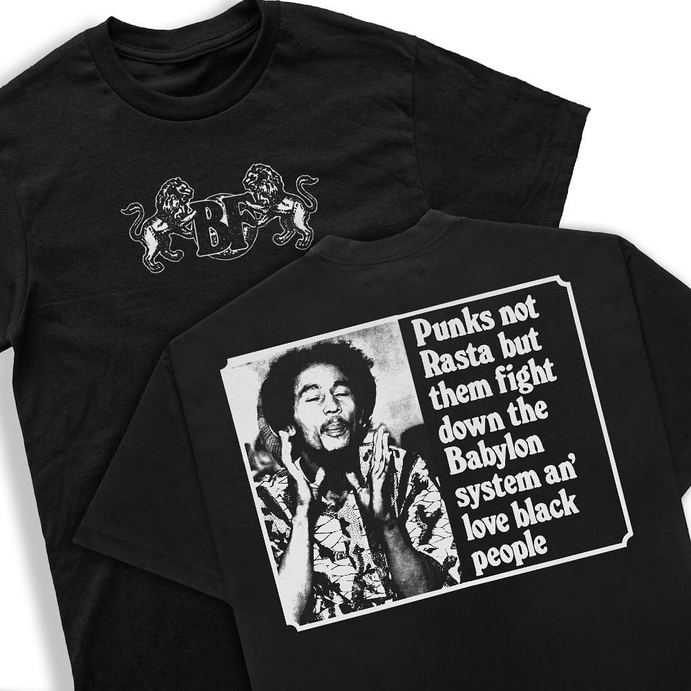 O Balanço e Fúria já foi e é produto, como nessa já clássica camiseta na temática da relação entre o punk e o reggae
