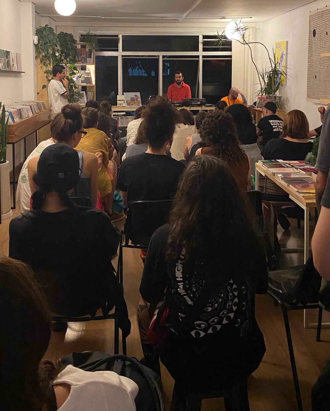 Isso é um movimento muito importante na minha visão. Fazer tudo sozinho, você vai se desgastando, né? Por muito tempo era OK fazer tudo sozinho, mas depois de um tempo já para de ser. Então, além de ter diversidade dessa quantidade de material, mais gente produzindo junto, tem essa diversidade de visão. Então, se a gente pensar nas parcerias recorrentes, a gente tem a Malu de Barros, que é arquiteta, muito eh eh dedicada à pesquisa das expressões sônicas pretas e urbanismo; a Natália Grilo, que também é mais do jazz e isso é muito presente na pesquisa dela; a Thaís Regina, jornalista muito interessada nas expressões eletrônicas urbanas de periferia e muito próxima da gente também; a Vanessa Mendes, a Mamba Negra, que também tem essa articulação de arquitetura, de espaço, música eletrônica… Então isso já dá uma ampliada um pouco no nos objetos que a gente olha, né? Então, acho que é fundamental não ficar situado nas experiências pessoais para tentar pautar algo que diz respeito à experiência de muita gente. Então tem que se deslocar mesmo!
