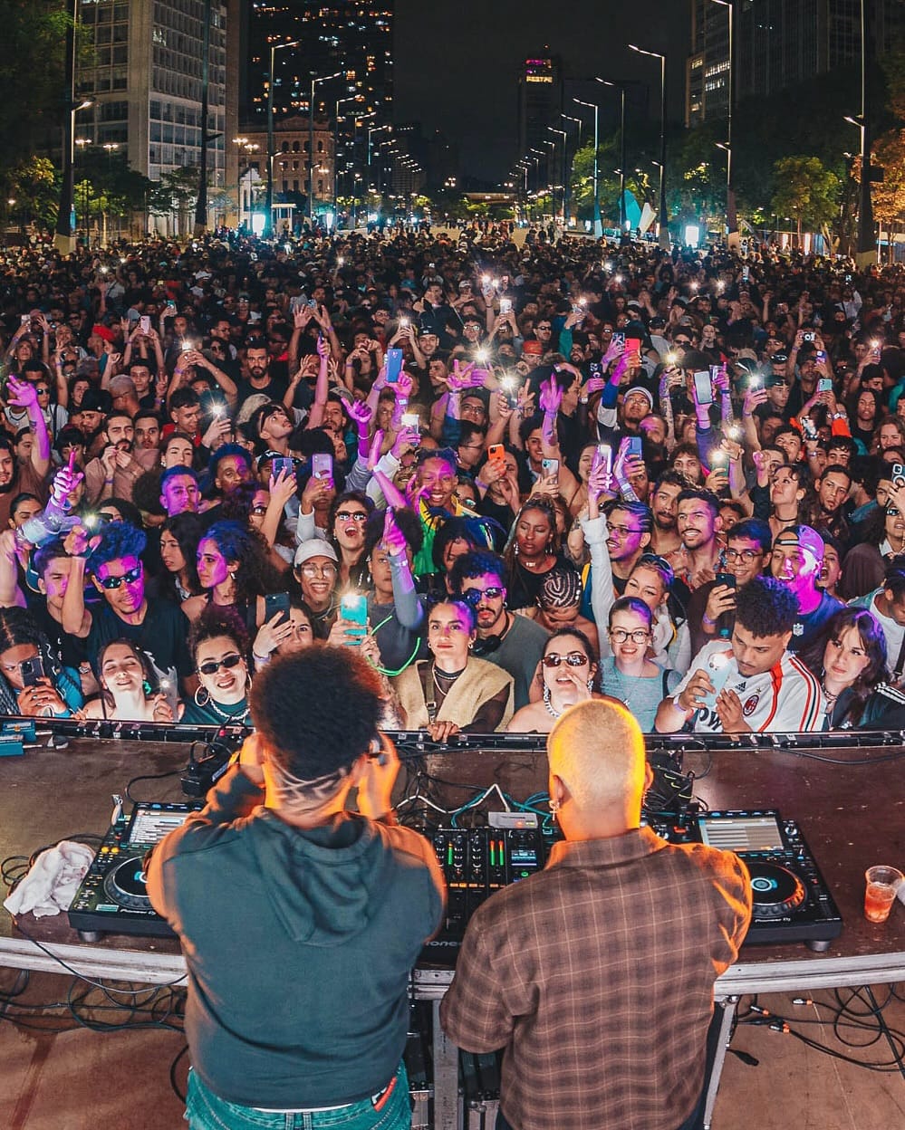 Mas, para além da homenagem nostálgica, o que por si já garante certo impacto na comunidade de fãs, o que Paulo e Matheus fazem aqui é um tributo à influência negra na música eletrônica. O gênero, que de forma equivocada é associado a “playboys”, ou ao som branco de clubes e boates, possui raízes profundas na cultura das periferias. A história começa nos Estados Unidos da década de 1980, com o House de Chicago e o Techno de Detroit, que surgiram em comunidades negras e LGBTQIAP+ como resposta à cena musical predominantemente branca da época. No Brasil, essa cultura de DJs também nasce preta, com a figura histórica do Seu Osvaldo Pereira, considerado o primeiro DJ do país e que hoje tem seu legado carregado pelo filho e neto no projeto Veraneio.