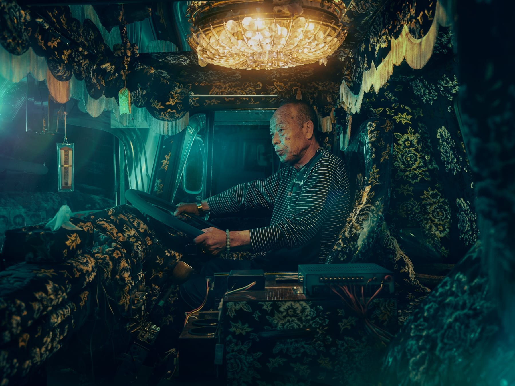 A customização, porém, não se limita ao exterior. As cabines internas dos Dekotoras também recebem um tratamento especial, transformadas em ambientes quase cenográficos. Cortinas bordadas, tapeçaria em veludo, volantes cromados, painéis cobertos de LED, luminárias de cristal e até pequenos altares fazem parte do interior desses caminhões. Para motoristas que passam dias ou semanas na estrada, a cabine vira tanto um lar quanto uma extensão estética do veículo, um espaço íntimo que reflete o mesmo espírito de excesso e devoção artesanal que reluz do lado de fora.