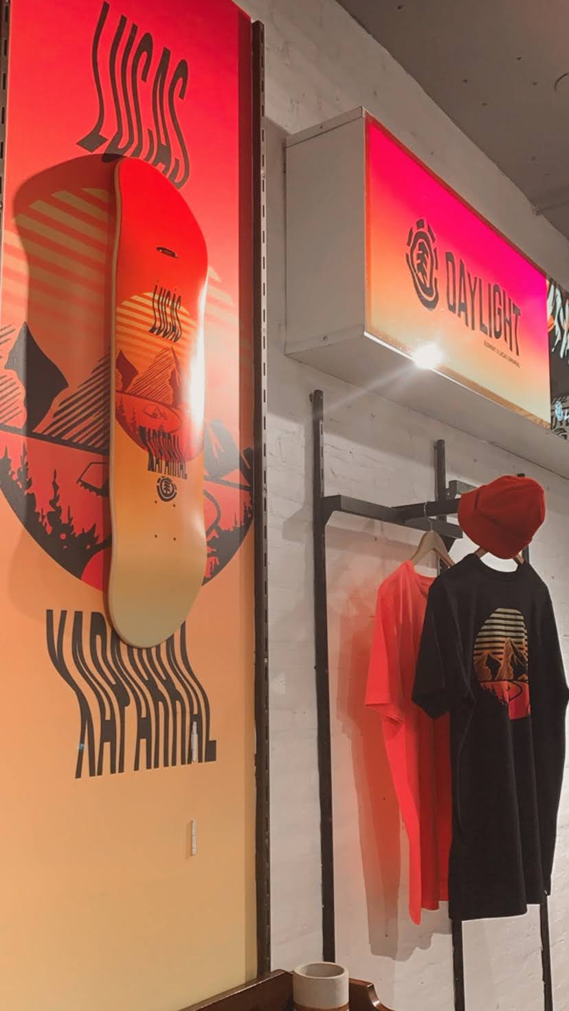 Em 2012 eu entrei na DC Shoes, que é uma marca de skate, e lá eu comecei a trabalhar um pouco mais com a parte de design gráfico junto com o design de vestuário. Fiquei no mercado de skate quase 10 anos no Brasil trabalhando nessa parte que a gente chama de produto. Trabalhei com marcas locais como a Blaze e a YourID. Também trabalhei na Element no Brasil e depois eu fiquei um tempo como freela e até fiz coisas com a Red Bull, que foi uma das maiores marcas que trabalhei - pra eles fiz um logo para um campeonato.