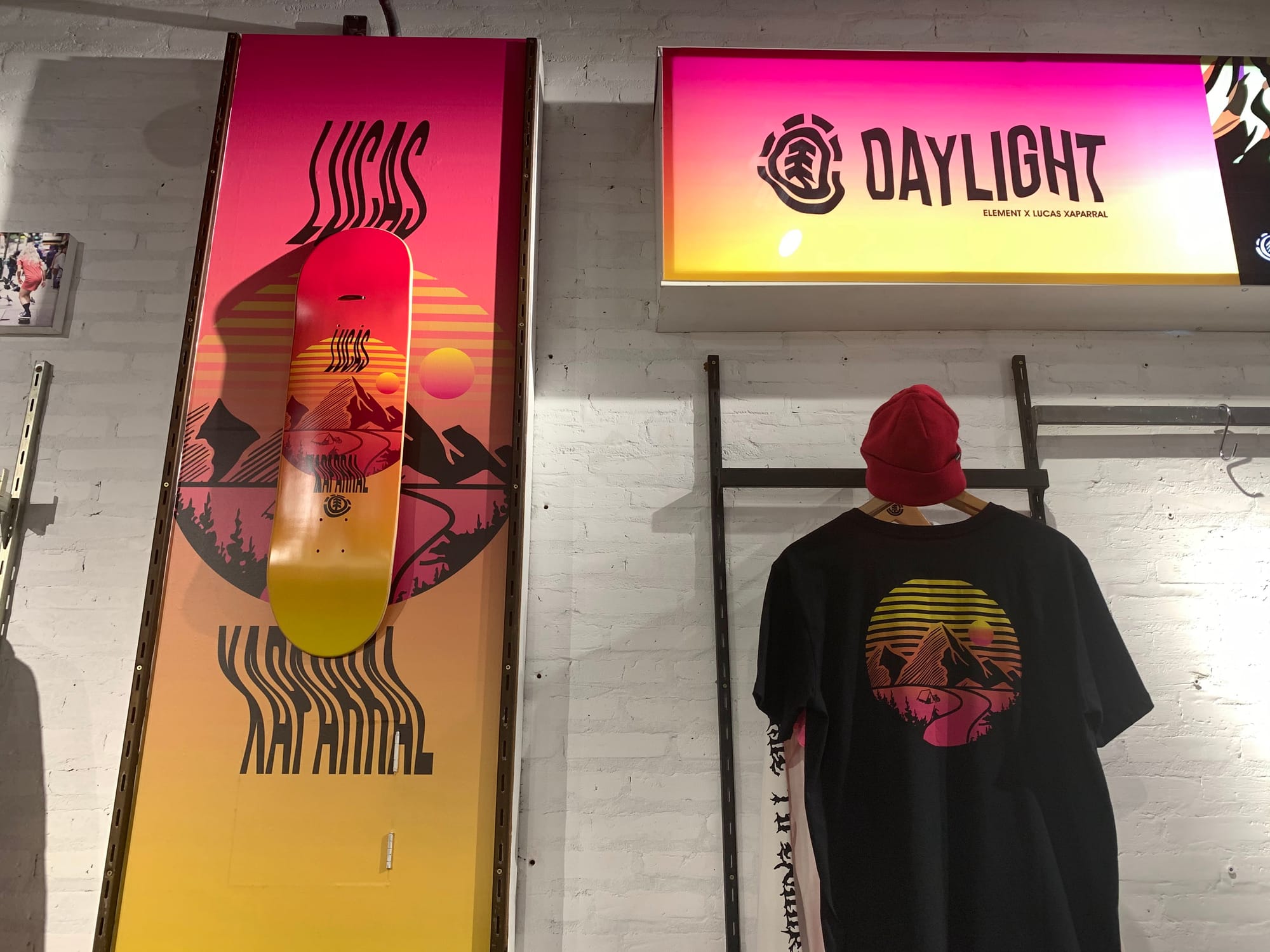 Trabalhar com shapes de skate foi muito legal, eu nunca tinha feito arte para shape antes e eu tive que ir na fábrica entender como era o processo de montar um skate, como que era impresso, que tipo de estamparia a gente poderia usar, isso foi muito legal. Na coleção com o (Lucas) Xaparral, foi onde eu pude explorar, mesmo, fazer um gráfico do zero.