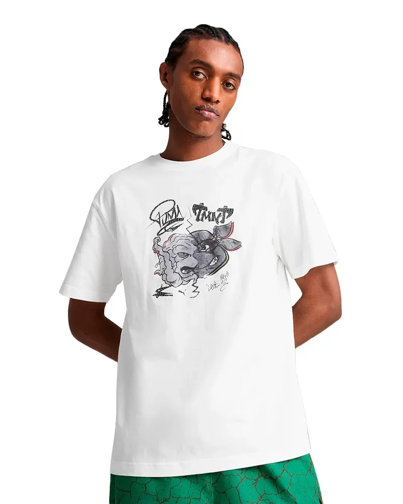Quando eu cheguei na Puma era para fazer só as estampas dos licenciamentos e eu pensei “vai sobrar muito tempo, não é possível” (risos). Mas foi aí que eu percebi que você tendo tempo para focar em uma área, você consegue ser muito melhor nisso, porque você consegue explorar mais coisas e ter mais tempo para testar coisas que no dia a dia. Quando você tem muitas funções, não sobra tempo, tem que tirar a tarefa da frente e ir pra próxima. Então essa foi o primeiro choque cultural.