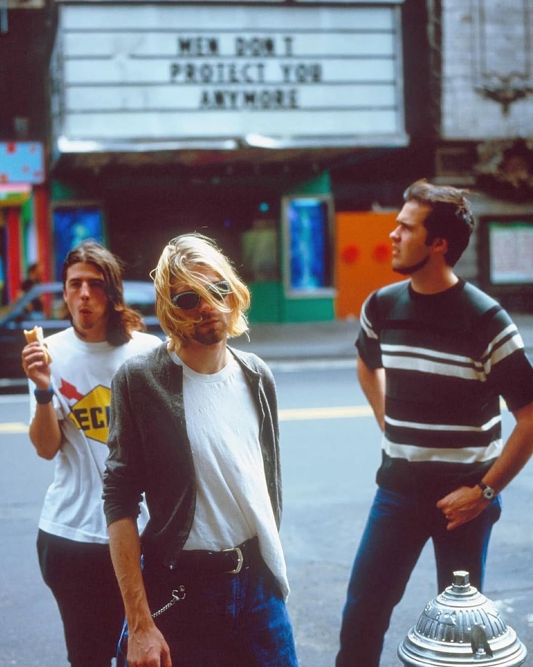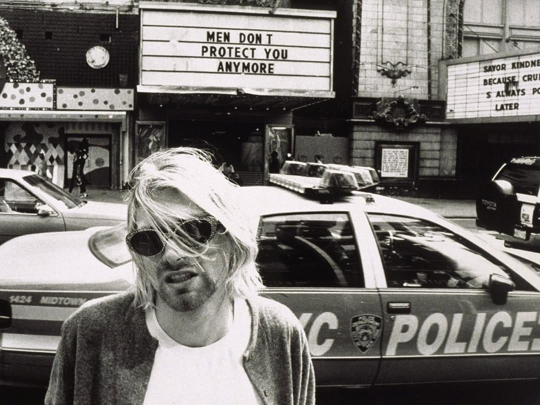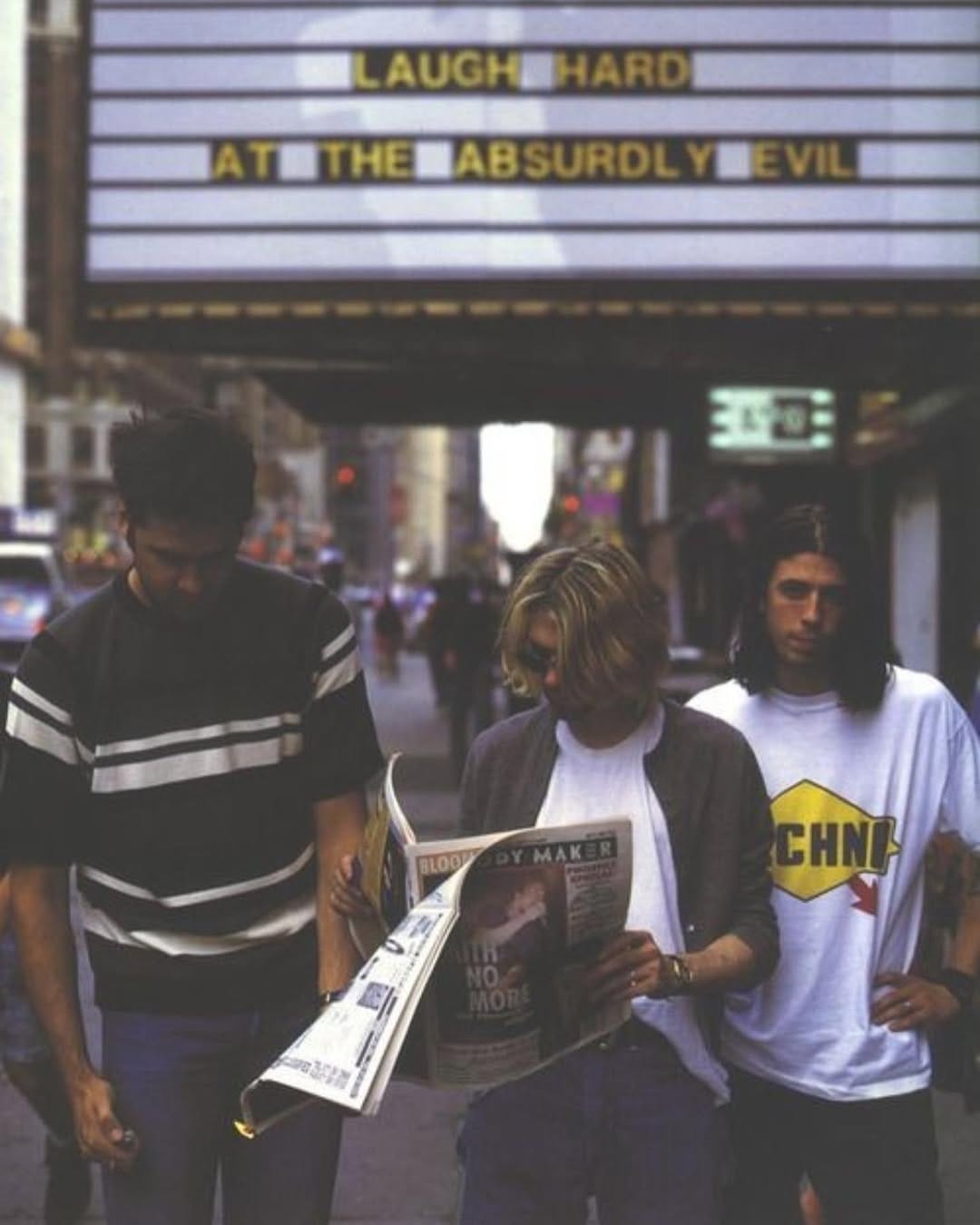 Dentro ainda de Survival, o Nirvana posava em frente a frases de Jenny (fotos: Stephen Sweet)