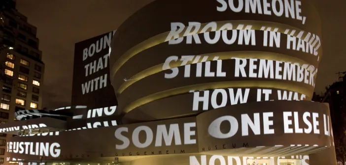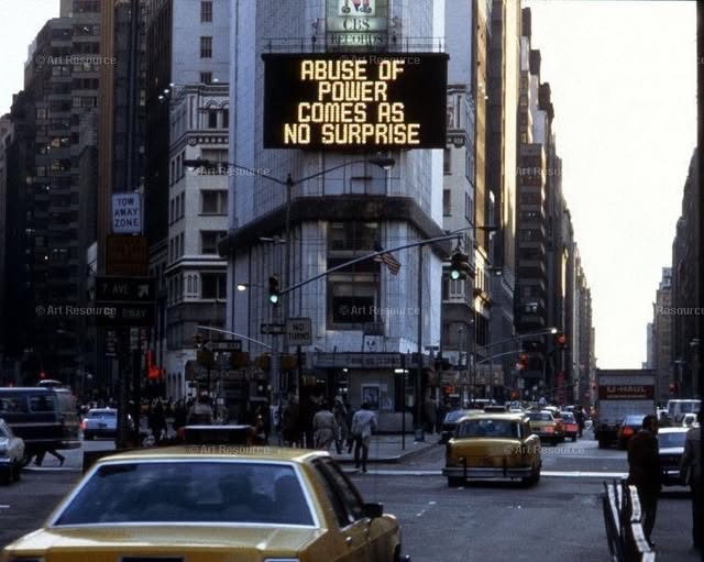 Na efervescência da arte dos anos 80 no século XX, uma artista se destacava como representante da linguagem em forma de aviso: Jenny Holzer buscou na força das palavras o lugar onde sua arte aconteceria e, por muitas vezes, chocaria o mundo. Apesar de seu nome ser gigante no fim dessa década, foi nos anos de 1970 que ela se mudou para Nova York e encontrou uma via perfeita para expressar seus sentimentos nas paredes da cidade.