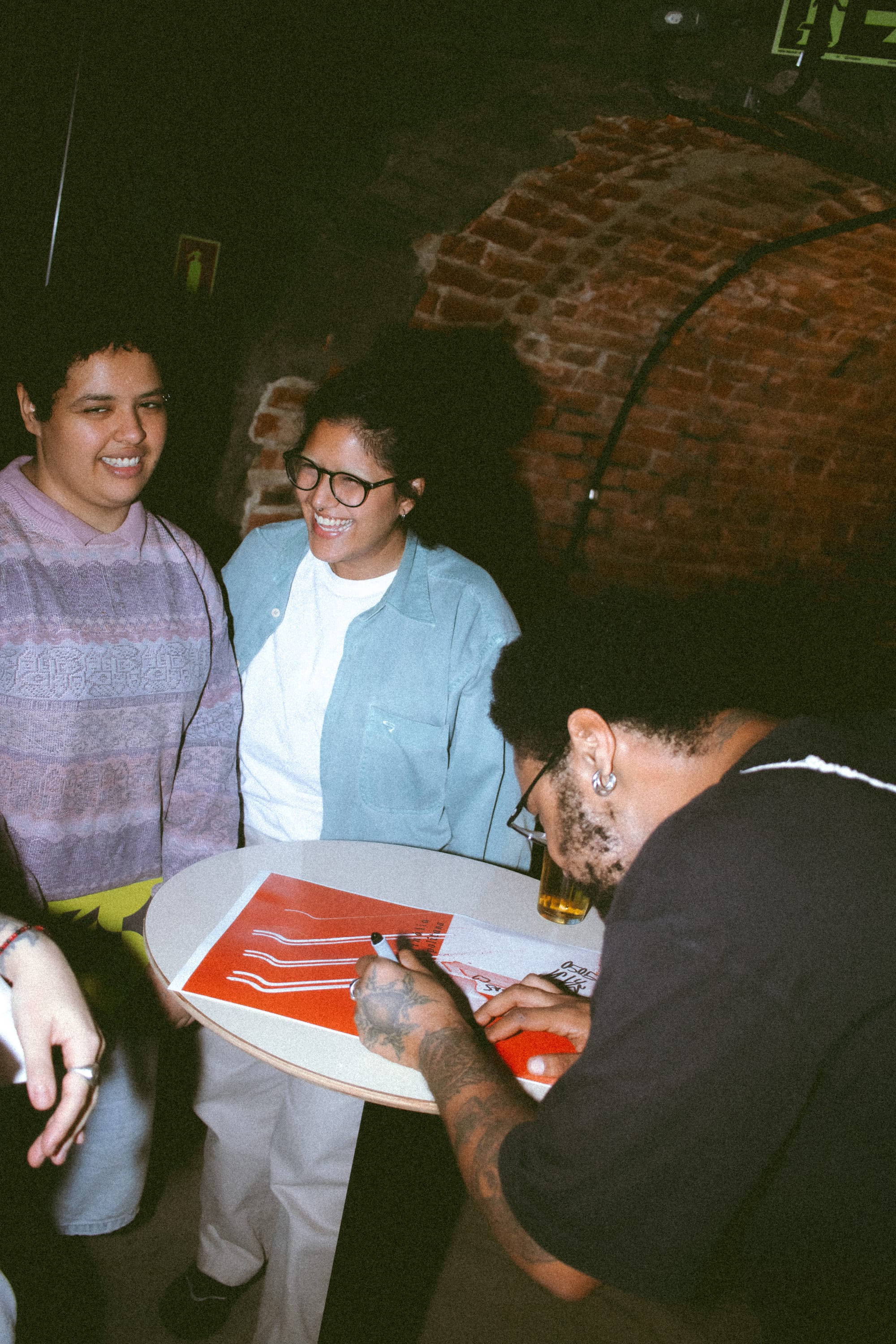 Como não é o trampo da maioria das pessoas, várias delas entregam pra festa somente a sua energia. Elas vão lá, dançam e depois vão embora, e não produzem música, não produzem festa, mas vão sempre na festa. Elas precisavam aparecer de alguma forma, e eu acho que a gente tentou fazer isso dando esse panorama de que o livro possa ser uma festa bem doida, sem um início, meio e fim, necessariamente."