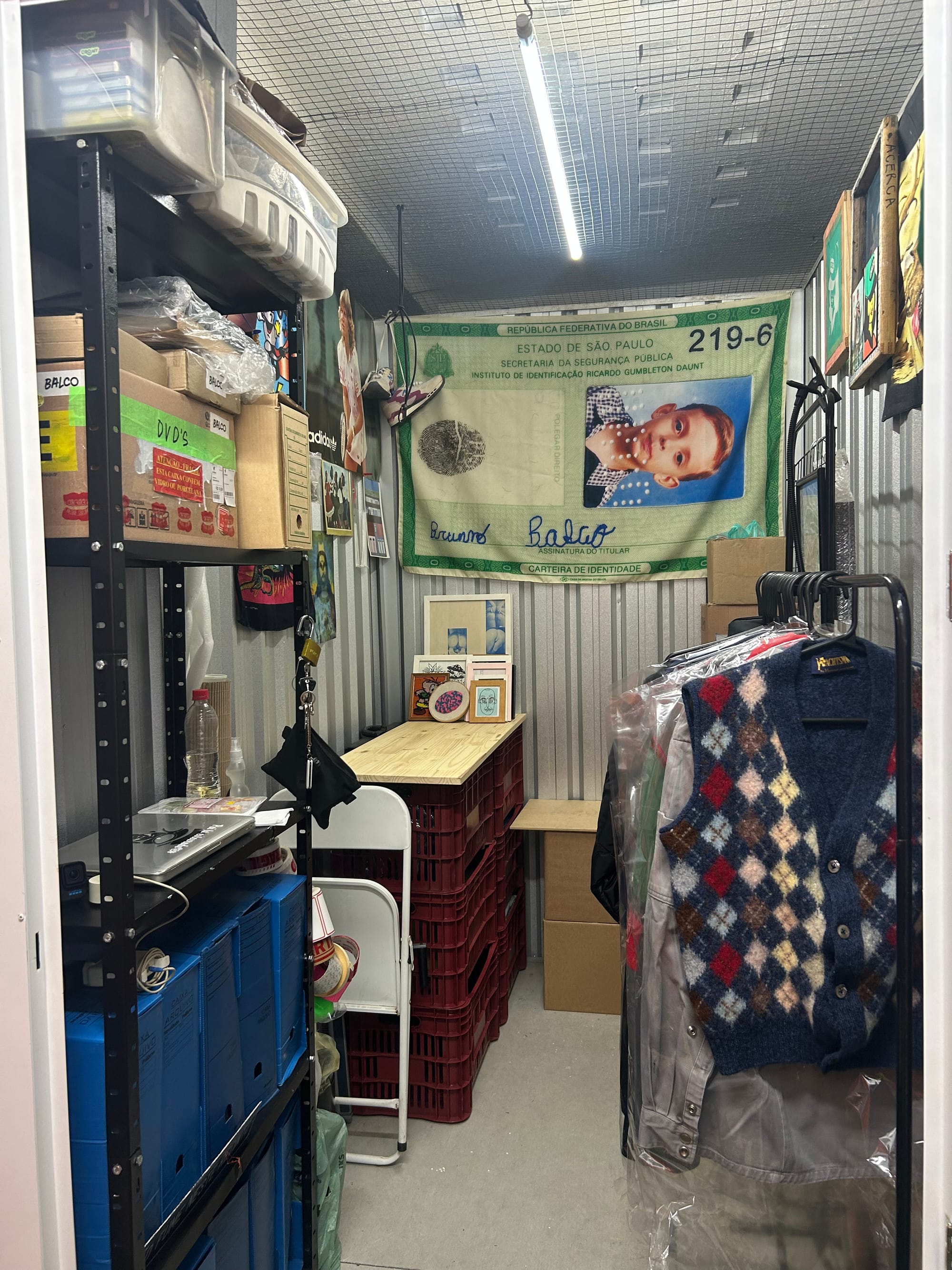 "Eu alugo um container onde guardo as minhas coisas. E eu tenho muita coisa, é um espaço de 4m³, guardo grande parte da minha coleção lá, porque eu tenho coleção de diversas coisas".