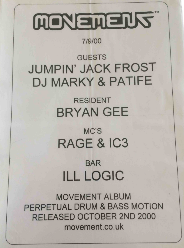 Em 1998, Patife e Adrian Harley colavam para Londres para conseguir autorização de uso do nome Movement, que era uma festa da Bulldozer, de Londres, mas que eles queriam usar o mesmo nome numa noite de Drum N Bass de quinta feira no Arena. Com uma fita VHS, os caras conseguiram mostrar o rolê brasileiro para um cara da Movement chamado Edo e claro que fecharam contrato do uso do nome. Isso não só permitiu que os caras colassem com o mesmo nome, mas também foi a porta de entrada para os DJs brasileiros serem conhecidos pelos ingleses e começarem a explorar mais universos além da periferia de São Paulo.
