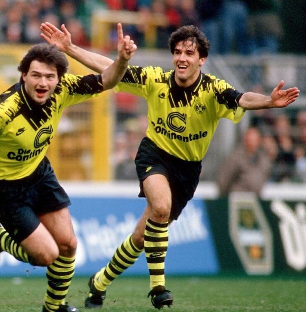 Com o Borussia, ficou de 91 a 95 e essa de 1993 trazia o número na diagonal