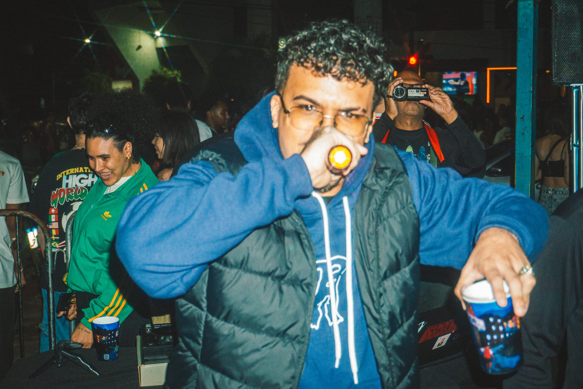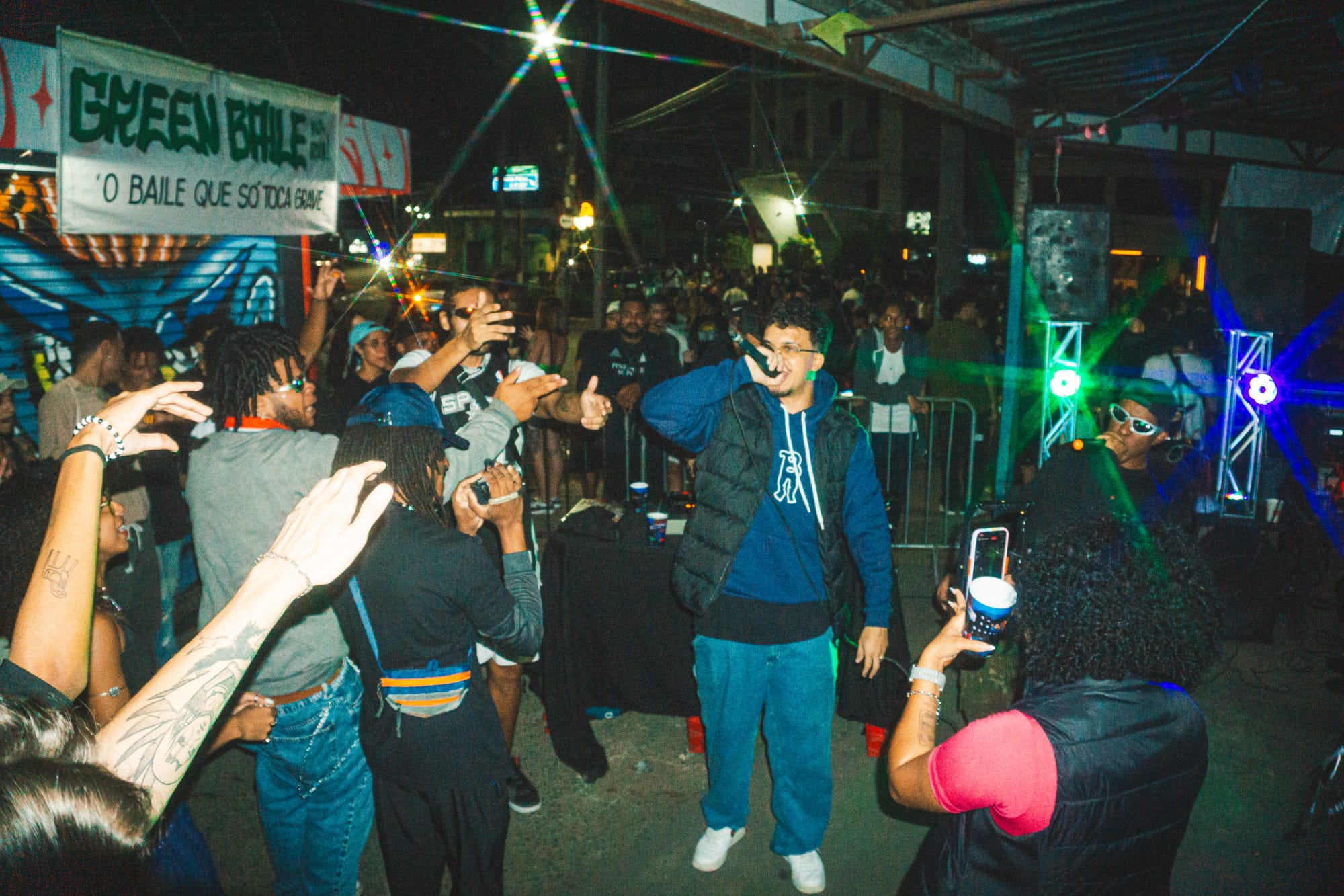 E aí, eu, junto com os moleques da NADA HITS, começamos a colocar isso na rua, colocar set nos eventos e sempre com open mic, mano. A gente começou a fazer essa movimentação, surgiu o Green Baile — que é um evento que tem aqui na Zona Oeste — chamaram a gente, a gente começou a colocar grime lá e foram surgindo alguns eventos.