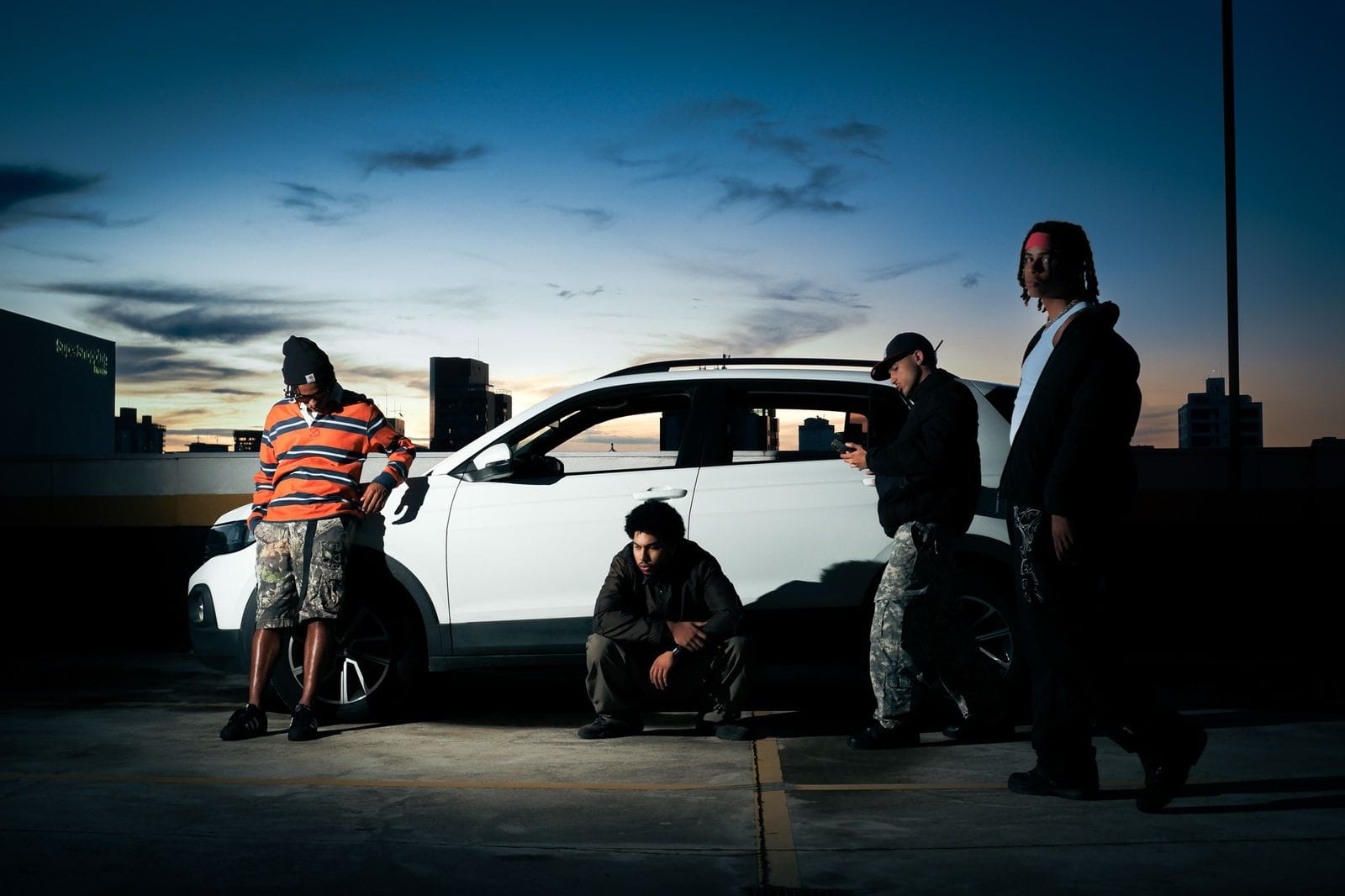 Mas tirando esses dois, que é uma parada mais de realização de moleque, eu curto muito o GANG ACTIVITIES, que é um autoral que eu fiz com 4 parceiros meus, junto com o Davi, Pagode, Shock e PX. Foi um ensaio autoral que a gente pegou pra fazer, nóis falou: “vamo fazer uma parada junto, os parceiros tem umas roupas, nóis arruma um lugar da hora, arruma um carro e vamo fazer umas fotos”. Enrolamos pra caralho, demoramos uns 2 meses pra fazer a parada, pra ser tudo certinho.