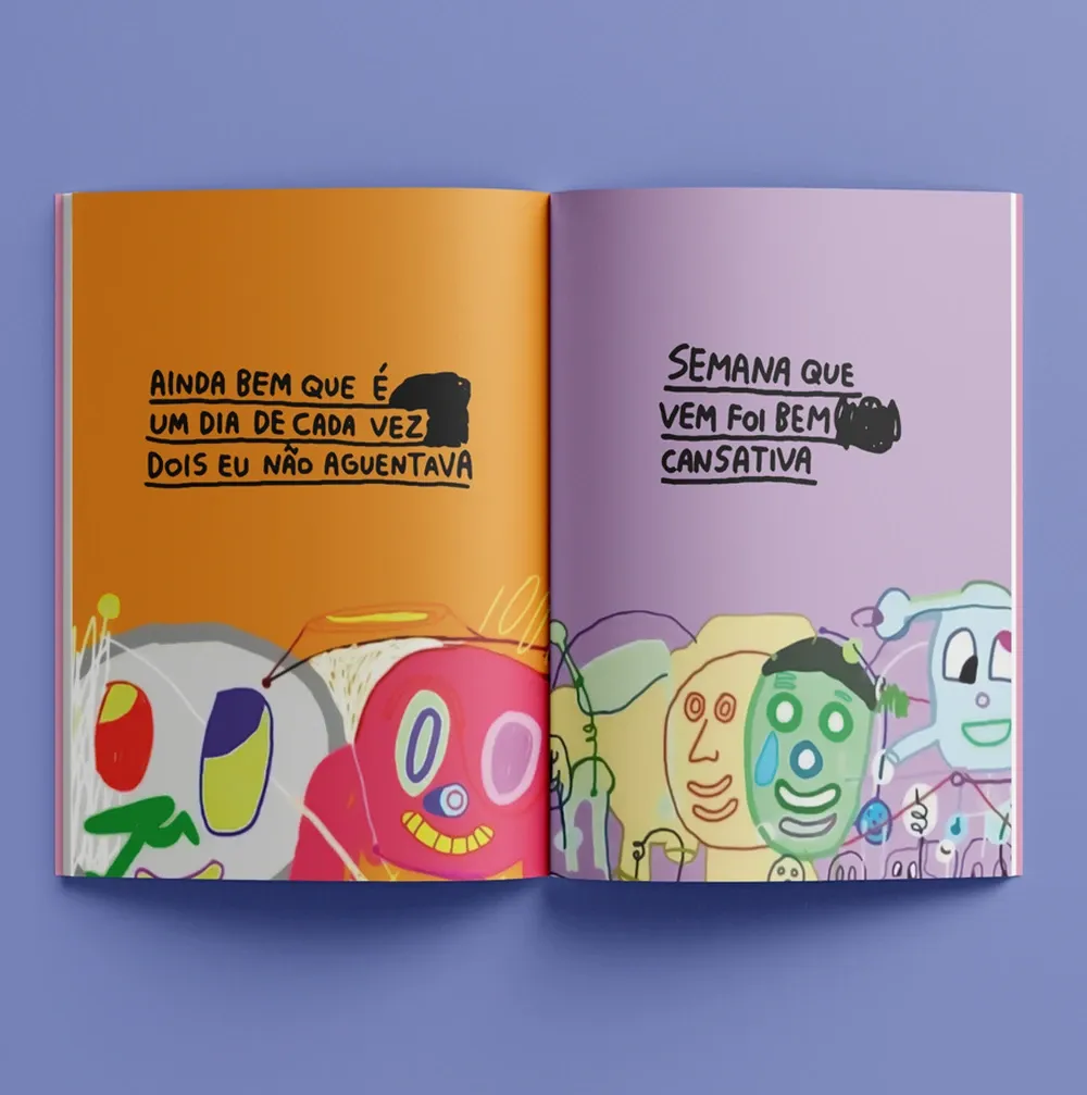 Queria te perguntar sobre o seu estilo. Você criou um formato muito reconhecível — os desenhos rápidos rabiscados, cores vibrantes, frases curtas. Você sente que isso te prende um pouco ou se sente livre pra experimentar novos caminhos?