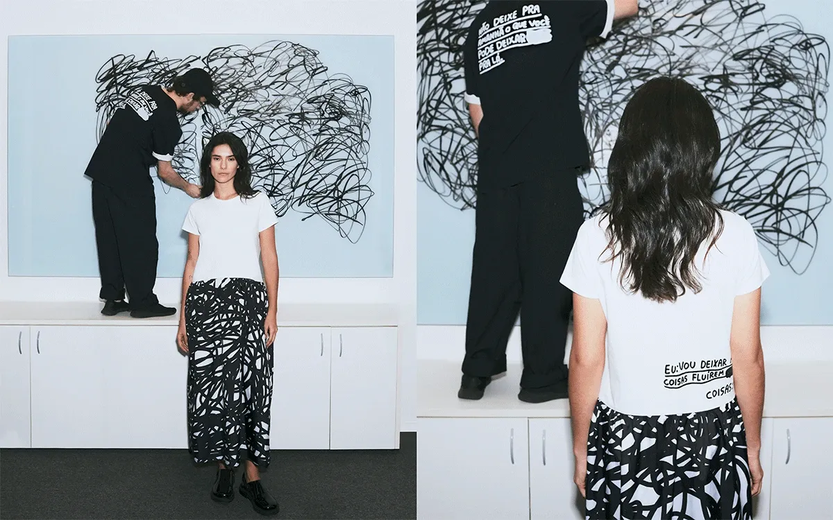 Foi meio que isso. Eu fazia os desenhos, tinha 100 mil pessoas me seguindo, no outro dia 160 mil. Uma coisa muito louca, né? E eu não me expus, nem botava foto minha, nada. Então eu não sentia tanta pressão — “tenho que entregar mais, estão esperando”. Às vezes batia um medo de repetir a fórmula, sabe? De virar algo industrializado. Mas aí vi uma frase da Pina Bausch que dizia que repetir nunca é a mesma coisa, sabe? Sempre sai algo diferente. Então comecei a pensar nisso.