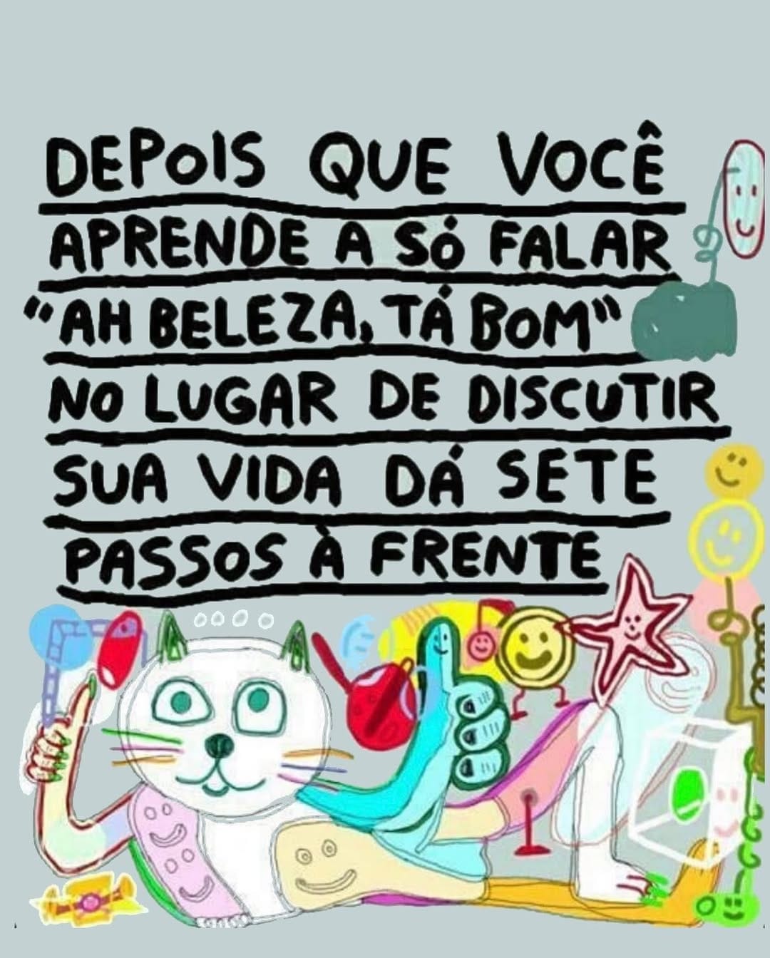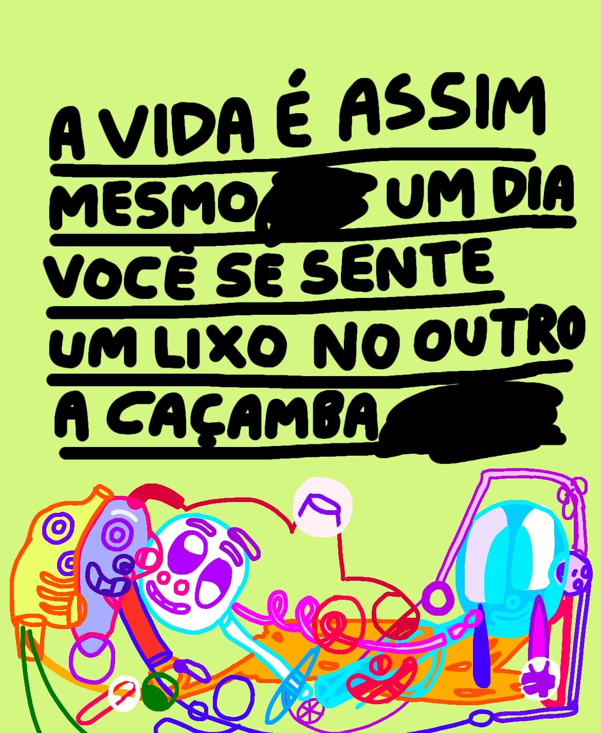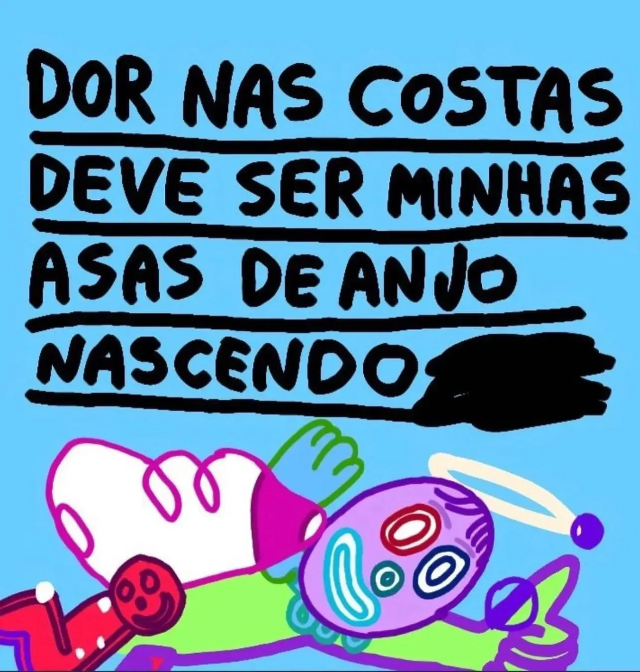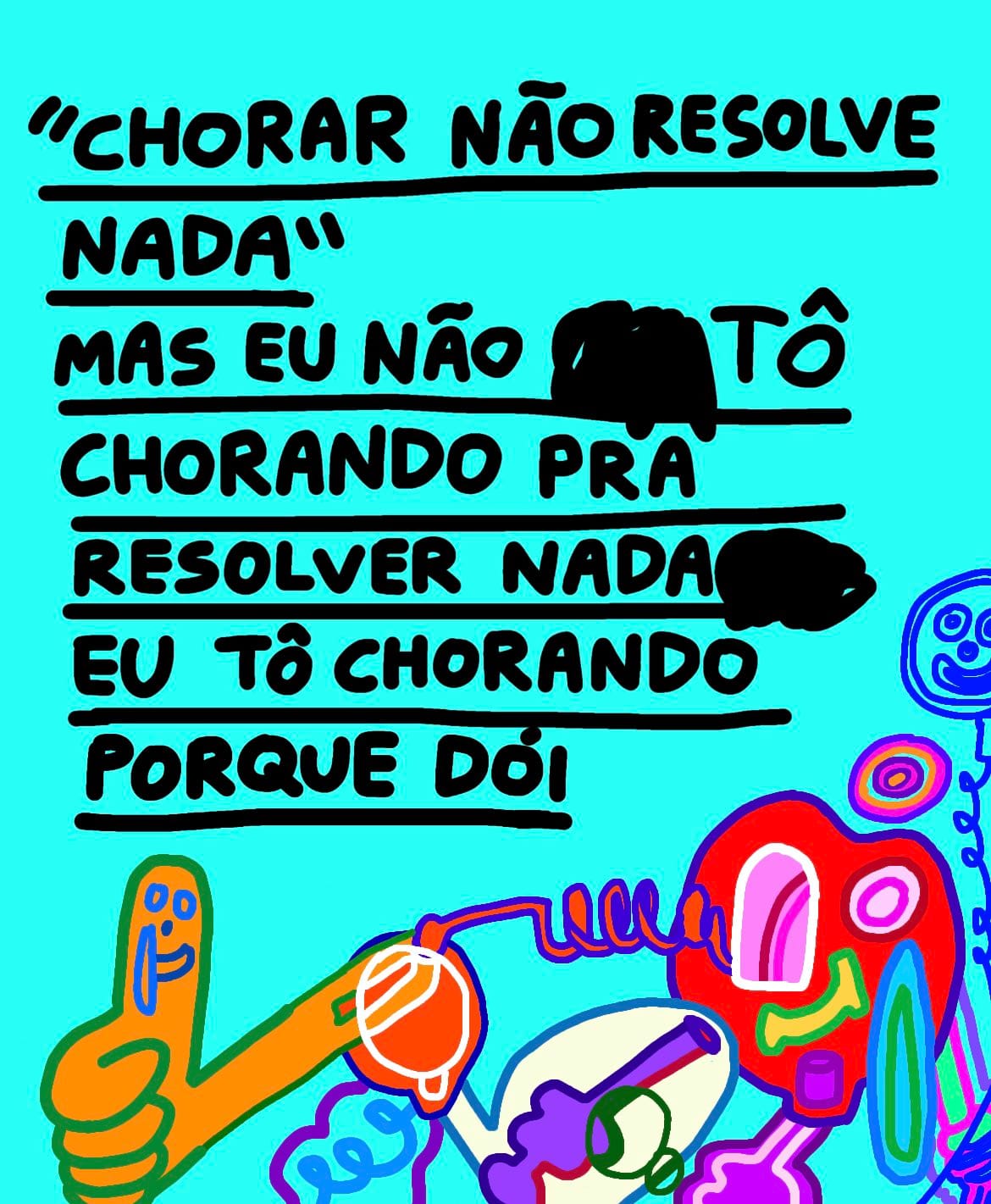 Isso me lembra um desenho que eu fiz uma vez que dizia: “sempre que estiver triste, desenhe — porque você vai ver que seus desenhos são piores que seus problemas (risos)".