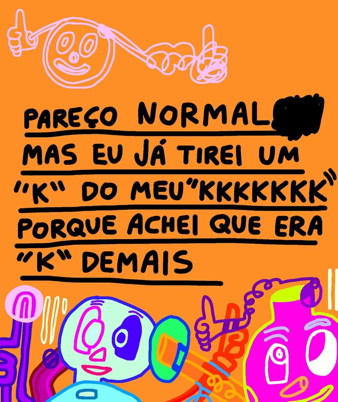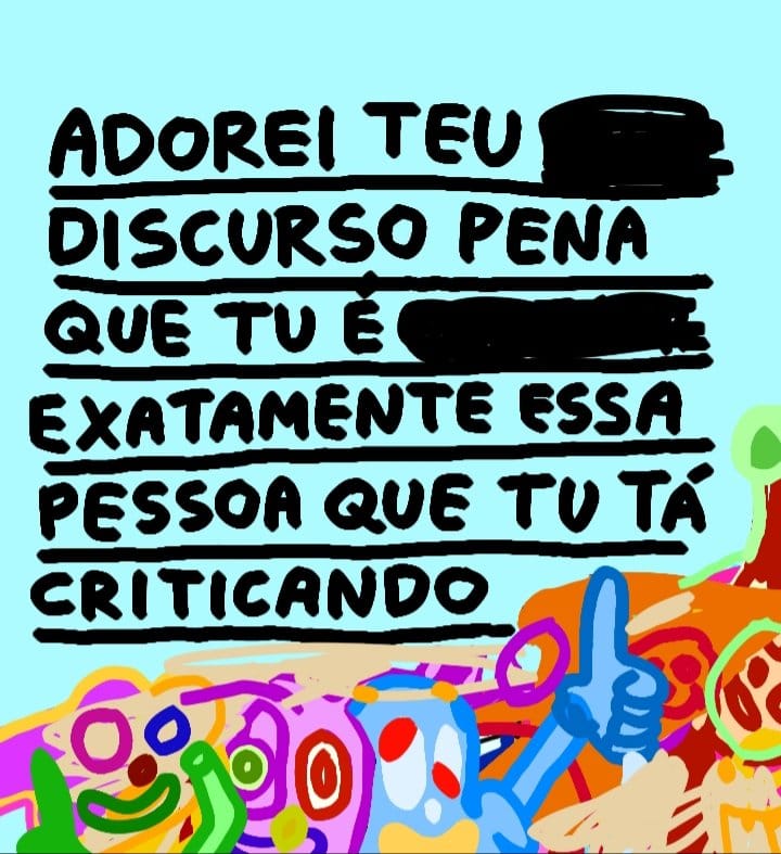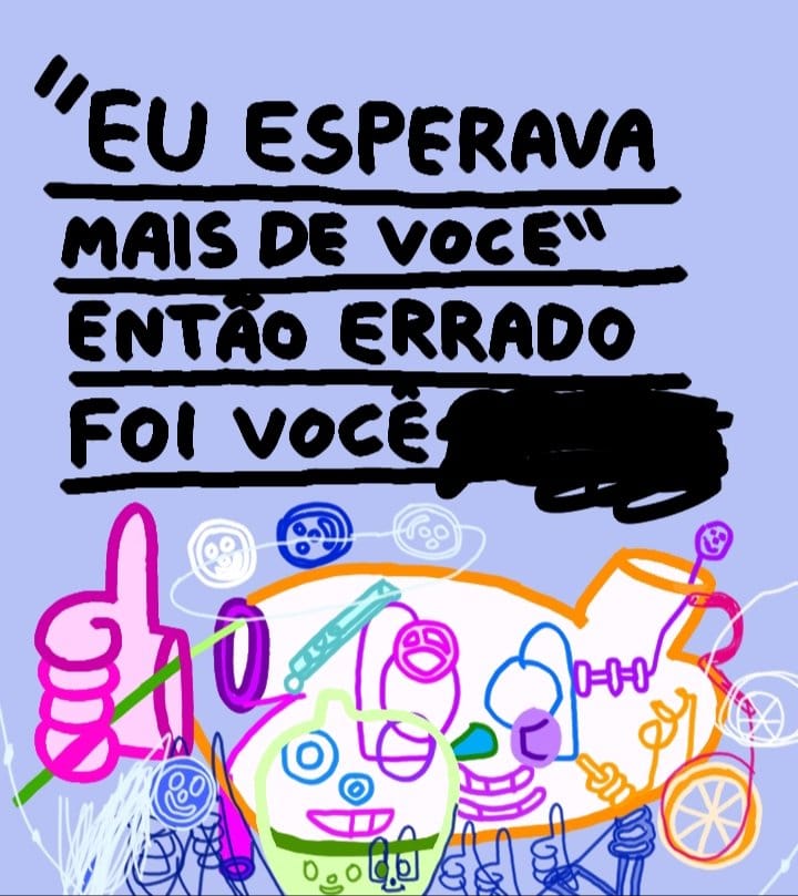 Eu sou meio punk nesse sentido, sabe? Porque eu posto tudo rabiscado, faltando letra, e no outro dia tem uma chuva de comentário: “faltou o R”, “tá torto”, “tá errado”. Aí eu vou lá e rabisco mais ainda.