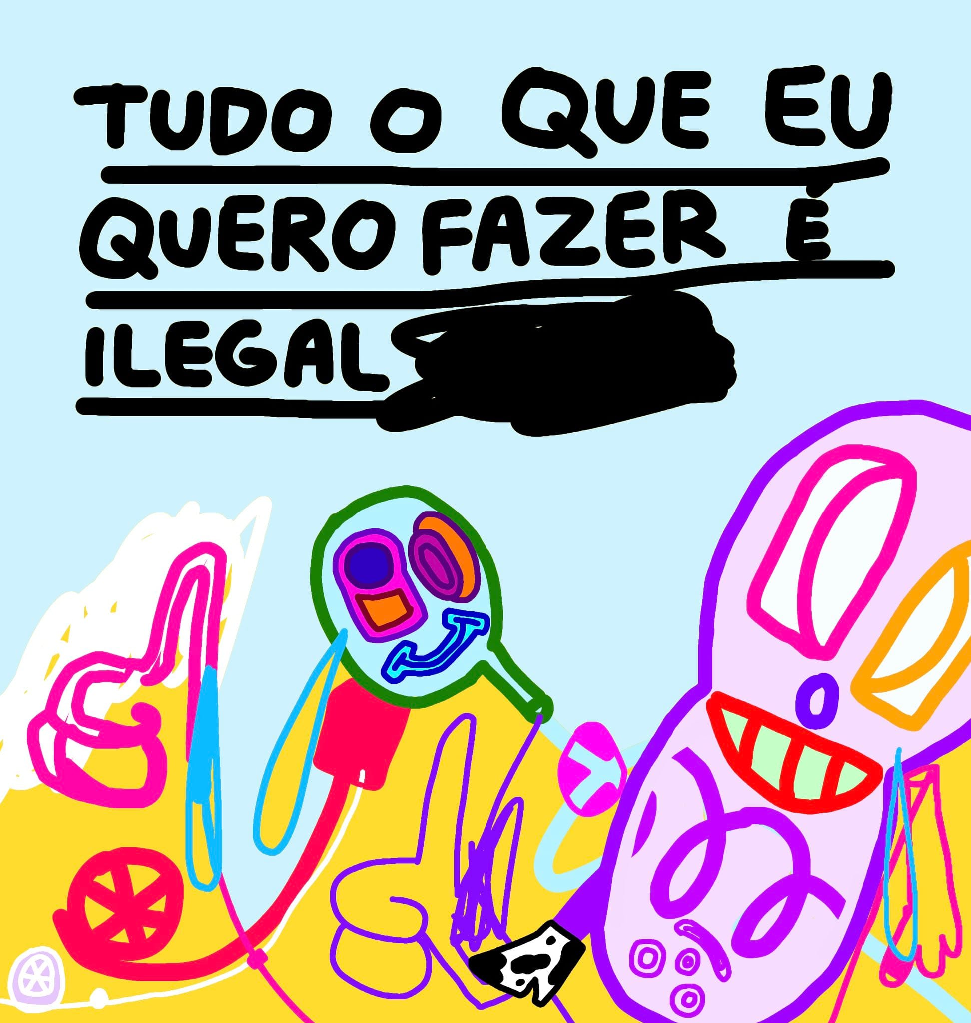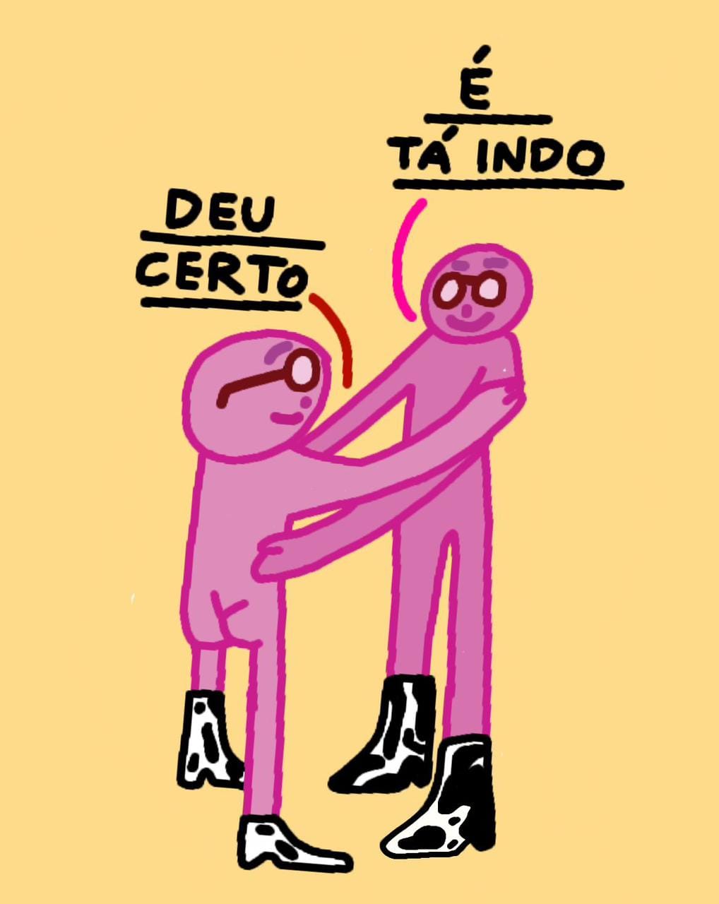 Acho que hoje tô numa fase legal, só produzindo meu trabalho. No começo eu tinha aquela coisa mais incerta, ficava meio “poxa, coisa de internet”, né? As pessoas me chamavam de influencer, e eu dizia “não, não me identifico com isso”. Agora acho que consegui o que eu queria: colocar minha ideia no mundo e ver as pessoas dialogando com o meu trabalho. Hoje mesmo recebi uma imagem de uma pessoa fantasiada com um desenho meu de Halloween. Eu disse: “porra, até a botinha de vaca fizeram, que coisa linda!” Outro dia uma garota me mandou um artigo que ela escreveu na faculdade sobre a relação dos memes e das artes visuais que me citava também.
