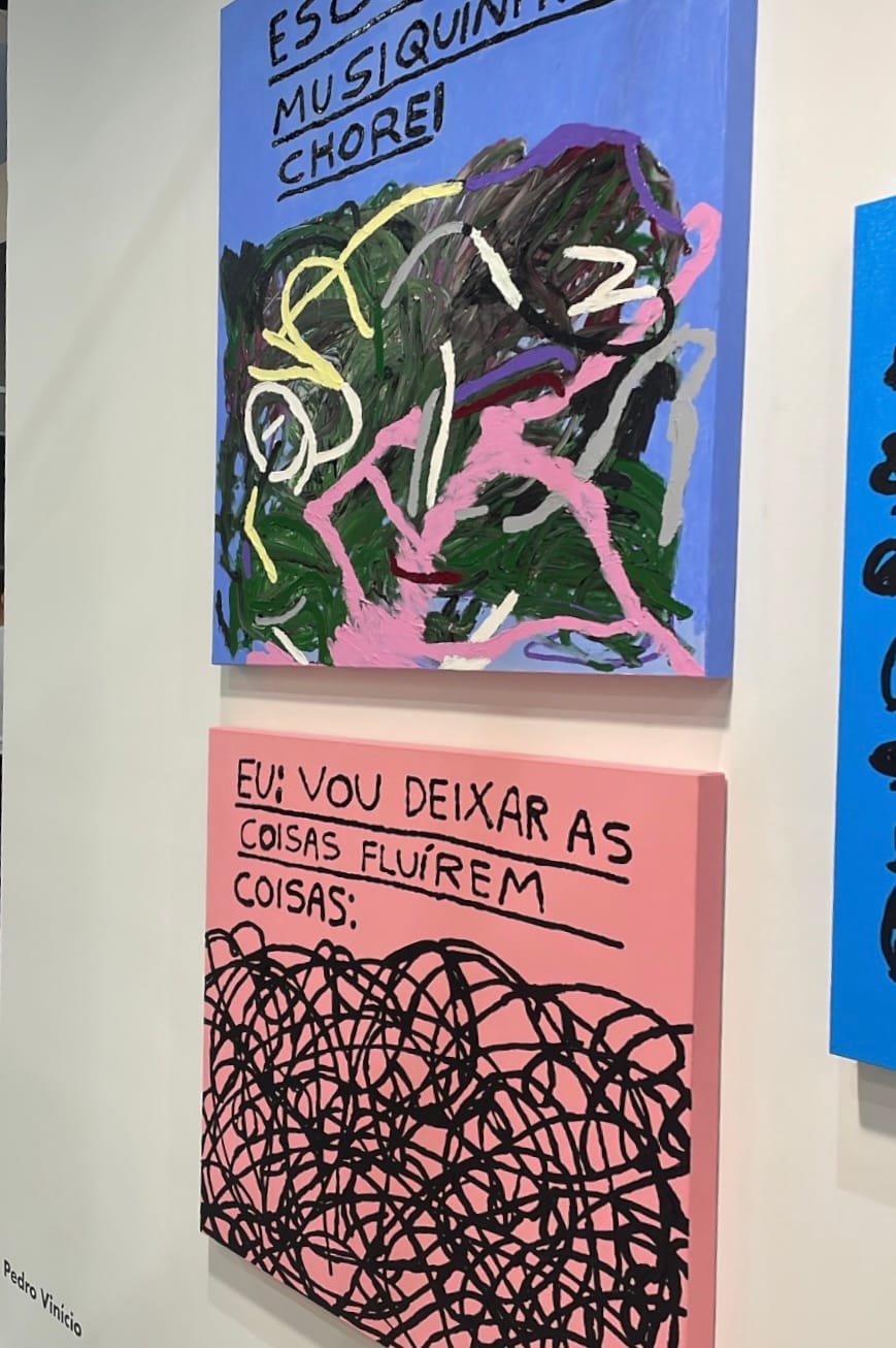 Pedro Vinicio entrou no radar de muita gente aos 14 anos, no auge da pandemia, quando começou a postar no Instagram aqueles desenhos aparentemente “toscos”, coloridos, com frases diretas que misturavam afeto, humor e um certo cansaço precoce do mundo. Era um adolescente do agreste de Pernambuco falando de solidão, desejo, ansiedade e internet com a naturalidade de quem anota o que vê na rua. E isso conectou. De repente, um garoto de Garanhuns estava sendo compartilhado por artistas que ele mesmo admirava.