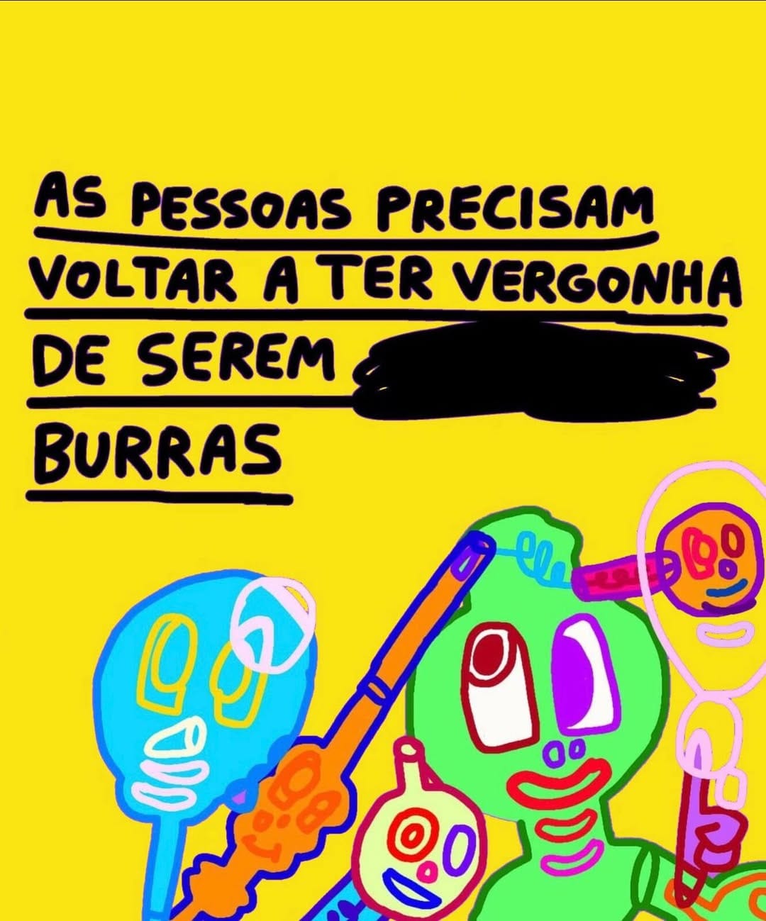 Já teve gente que se incomodou com um desenho meu sobre bipolaridade. Eu desenhei “você é bipolar?” e tinha os botões “sim” e “não”. A pessoa marcava os dois, meio confusa (risos). Aí teve uma pessoa que ficou puta, também não dá pra ser messias, querer agradar todo mundo. Pra mim, a arte e o humor têm ser ácida, tem que incomodar.
