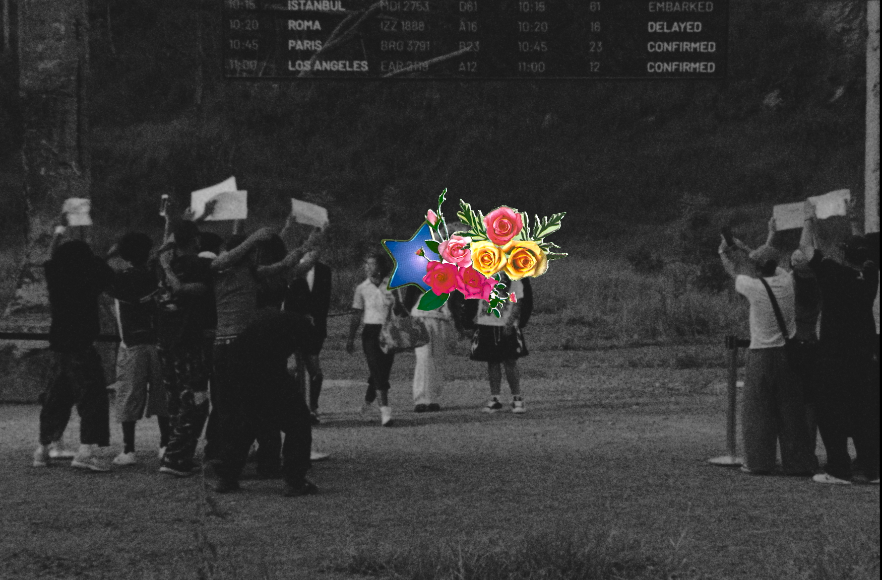 O Denti me ajudou com isso, Fernando Denti, nesse processo de experimentação, mais analógico também, de elementos, objetos, coisas que a gente escaneou e colocou ali para ter a sensação desse acúmulo de informações, de experiências — essa enxurrada de coisas que nos remetem à viagem, ao que ele tá falando ali na música.
