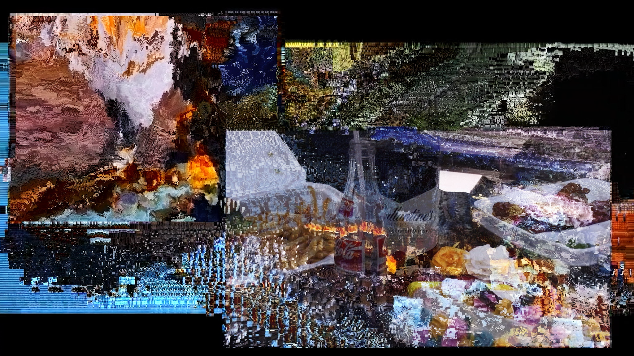 Como eu te falei, a ideia era começar com um lado e depois fazer essa dobra no tempo e mostrar o outro — e isso não saiu exatamente como eu pensava — o que acabou acontecendo foi um crescimento do quão claras, didáticas ou não-distorcidas as imagens estão, e elas vão ficando cada vez mais lisérgicas e mais absurdas até esse momento em que vira outra coisa, que é essa transformação no relógio.
