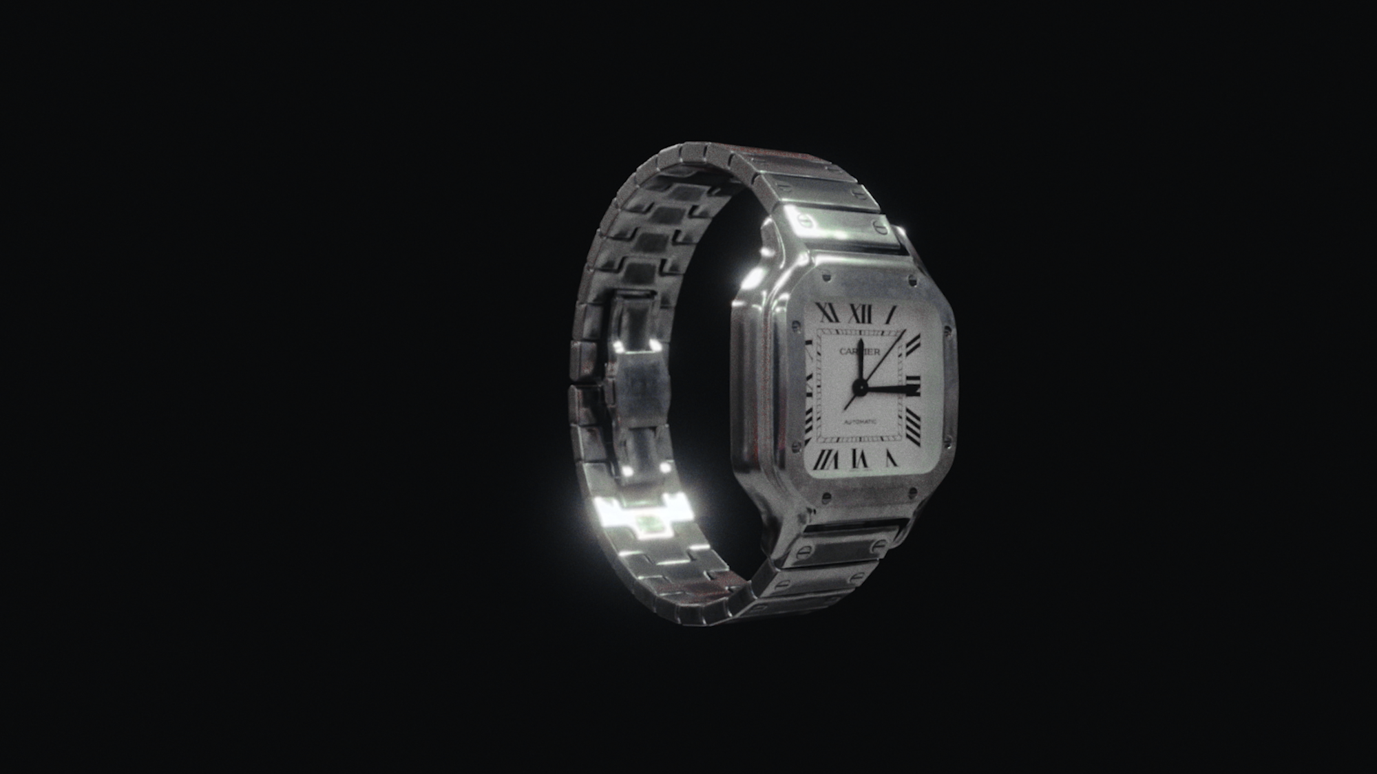 A ideia de sair do relógio era uma coisa que foi tomando forma aos poucos. Estava tudo de fato ali dentro do relógio, do Cartier Santos Dumont, que é o relógio que dá o nome à música, mas o fato de sair de dentro da bolinha, isso foi uma coisa que foi se desenvolvendo ao longo do processo. Eu tive bastante sorte de contar com uma galera muito foda da pós, que fizeram esse 3D que ficou absurdo.