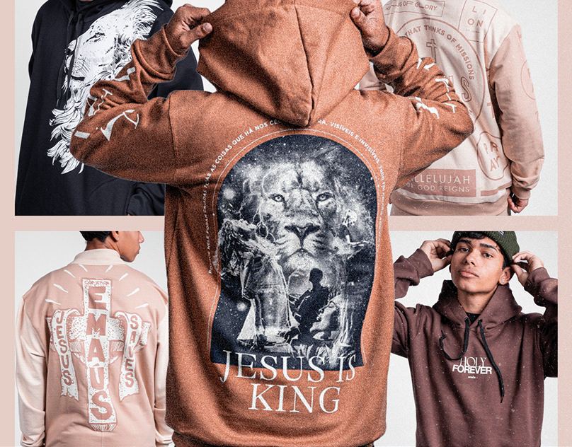 Algumas peças da Code Collection, Eleve e Coletivo Emaús, marcas brasileiras que unem o streetwear à fé cristã