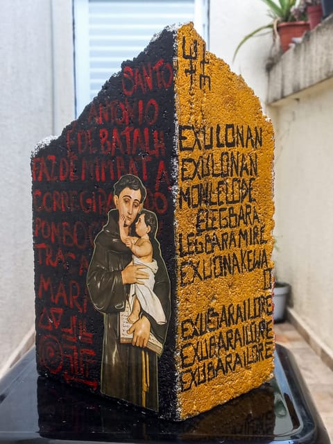 Rodrigo Zaim, Capelinha. Seu santo é Exú, Tinta acrílica sobre Bloco de Concreto Classe C (2024 - 2025)