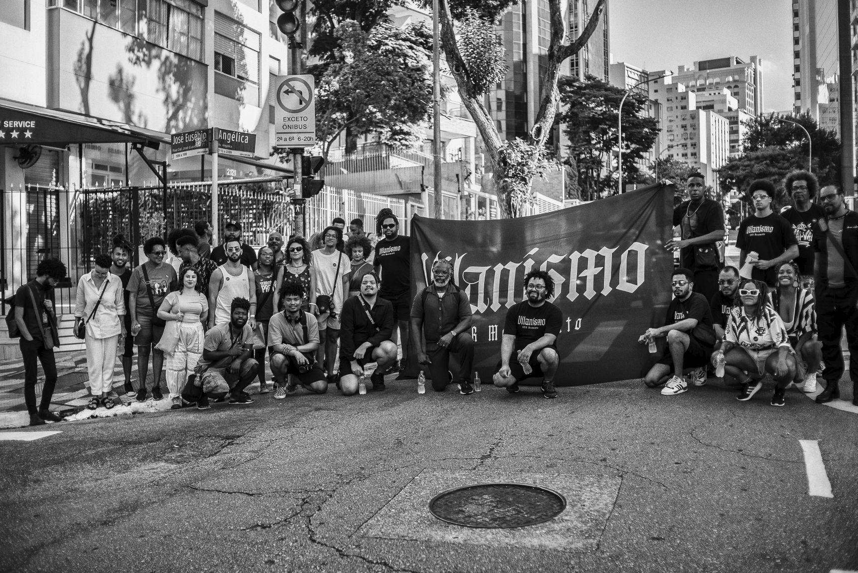 Diego Crux: Começando pelo “contra”, eu acho que posso falar um pouco da gênese da irmandade. O Ramo (Negro) é esse catalisador, ele conhecia todos os membros e começa a escrita desse manifesto em 2021 e nos convida para participar, colaborar, fazer sugestões, fazer uma escrita coletiva novamente. Ele tinha algumas coisas no horizonte, do ano que viria, que era o bicentenário da independência e os 100 anos da semana de 22 de arte moderna aqui em São Paulo. Lá eles tinham um manifesto, o manifesto antropofágico. E a gente estava pensando nessa ausência de pessoas negras; com exceção do Mário de Andrade, eram todas pessoas brancas da elite paulistana.