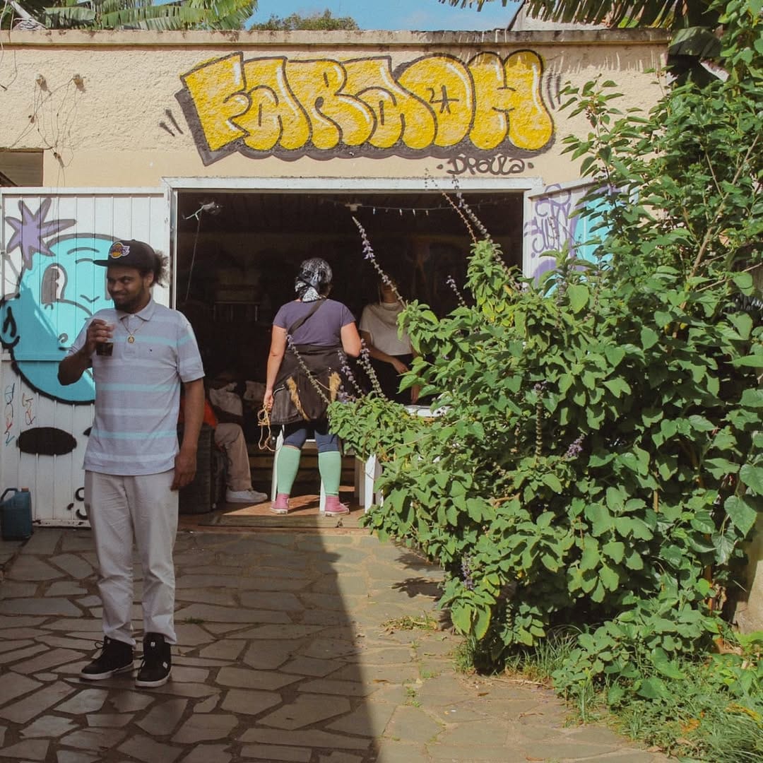 Dentro desse fascismo todo, a gente sofreu uma retaliação muito grande lá — o nosso espaço cultural começou a sofrer perseguição policial. Era uma casa linda, só que toda grafitada, e às vezes a gente tava lá trabalhando, fazendo música, fazendo workshop, e passava um pai com um filho e falava: "não olha não filho, isso aí é casa de bandido, de traficante." A gente passou por várias repressões policiais lá, vários enquadros, e acabou perdendo a casa — a dona da casa entrou com uma ação, foi muito racista, uma truculência muito grande. O quilombo Faraoh ainda existe, a gente quer continuar com alguns projetos, mas não tendo a mesma estrutura que a gente tinha antes é meio difícil.