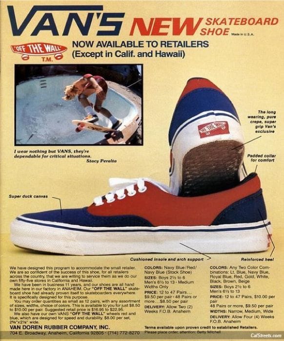 Era (e até hoje é) um tênis extremamente simples. Cabedal de lona, sola vulcanizada e uma construção direta ao ponto. Nada de tecnologias complexas, apenas um produto funcional. Nos anos seguintes ao lançamento, o tênis foi rapidamente adotado por skatistas da Califórnia, que encontraram na sola vulcanizada uma aderência perfeita para o skate.